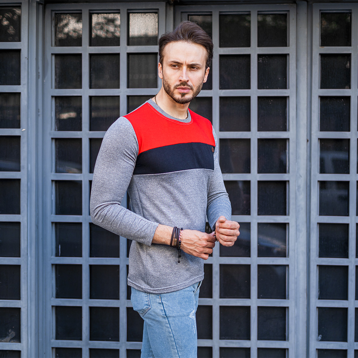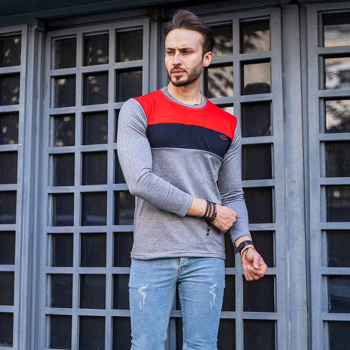 تیشرت پاییزه دوتیکه قرمز مشکی مدل farhod