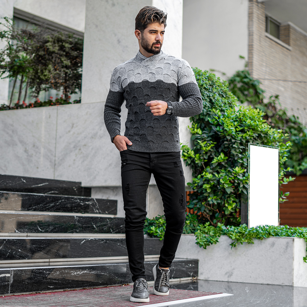 پلیور دورنگ طوسی ذغالی مردانه مدلArkia