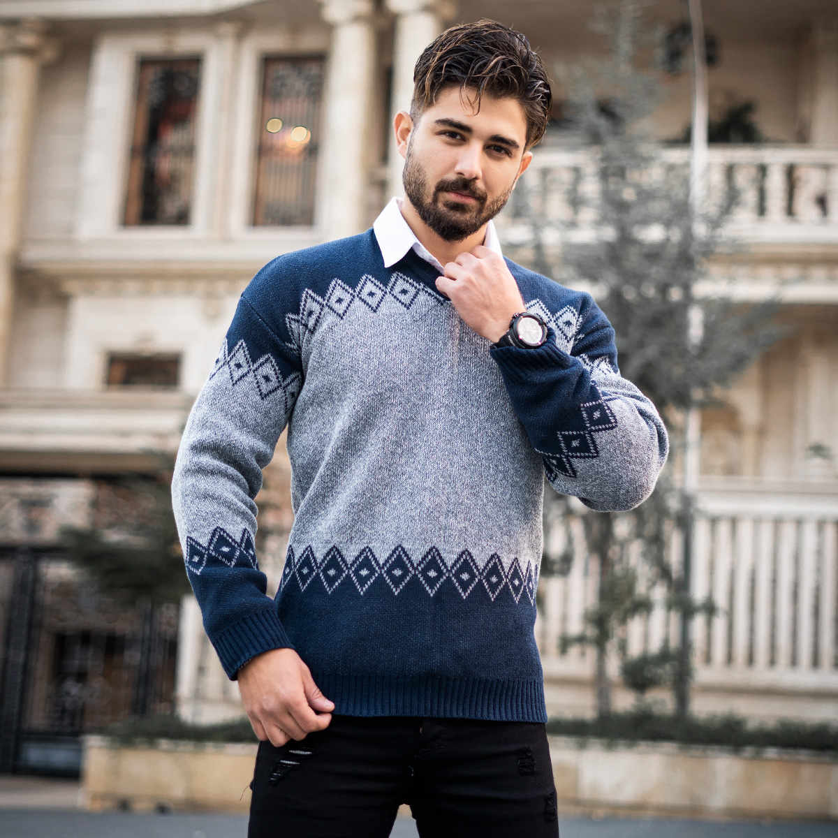 پلیور مردانه سرمه ای طوسی مدل lizan