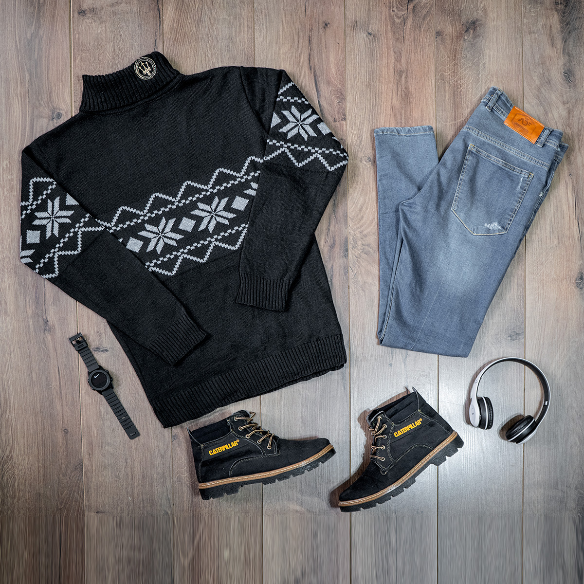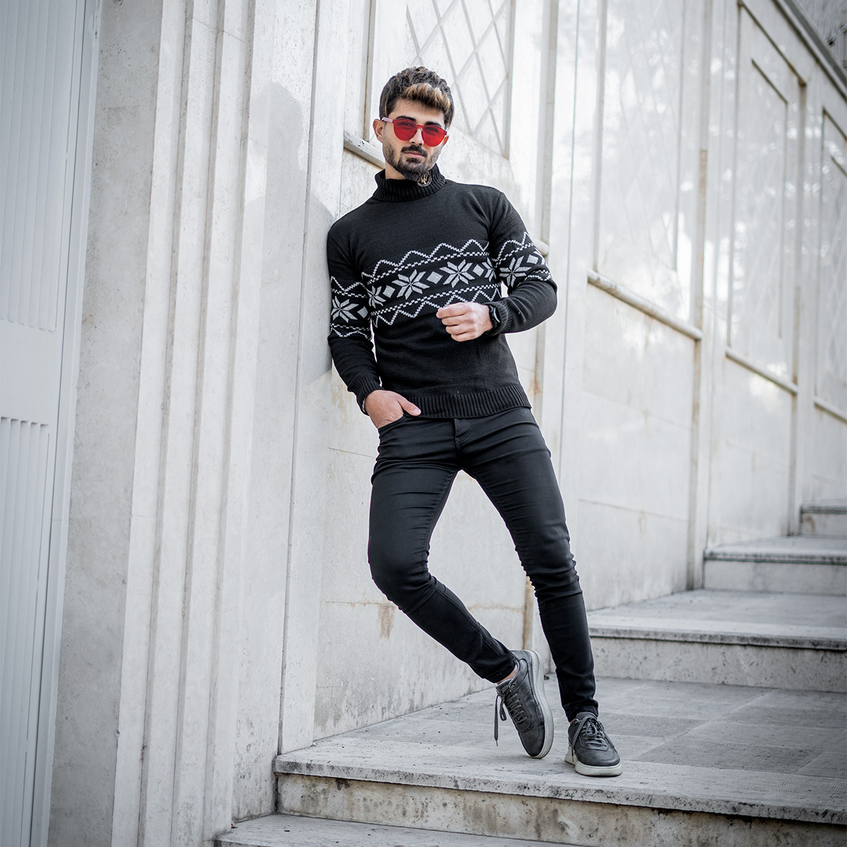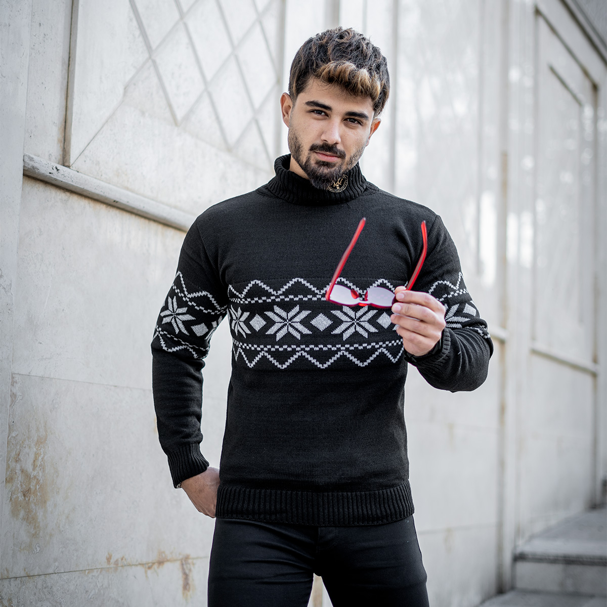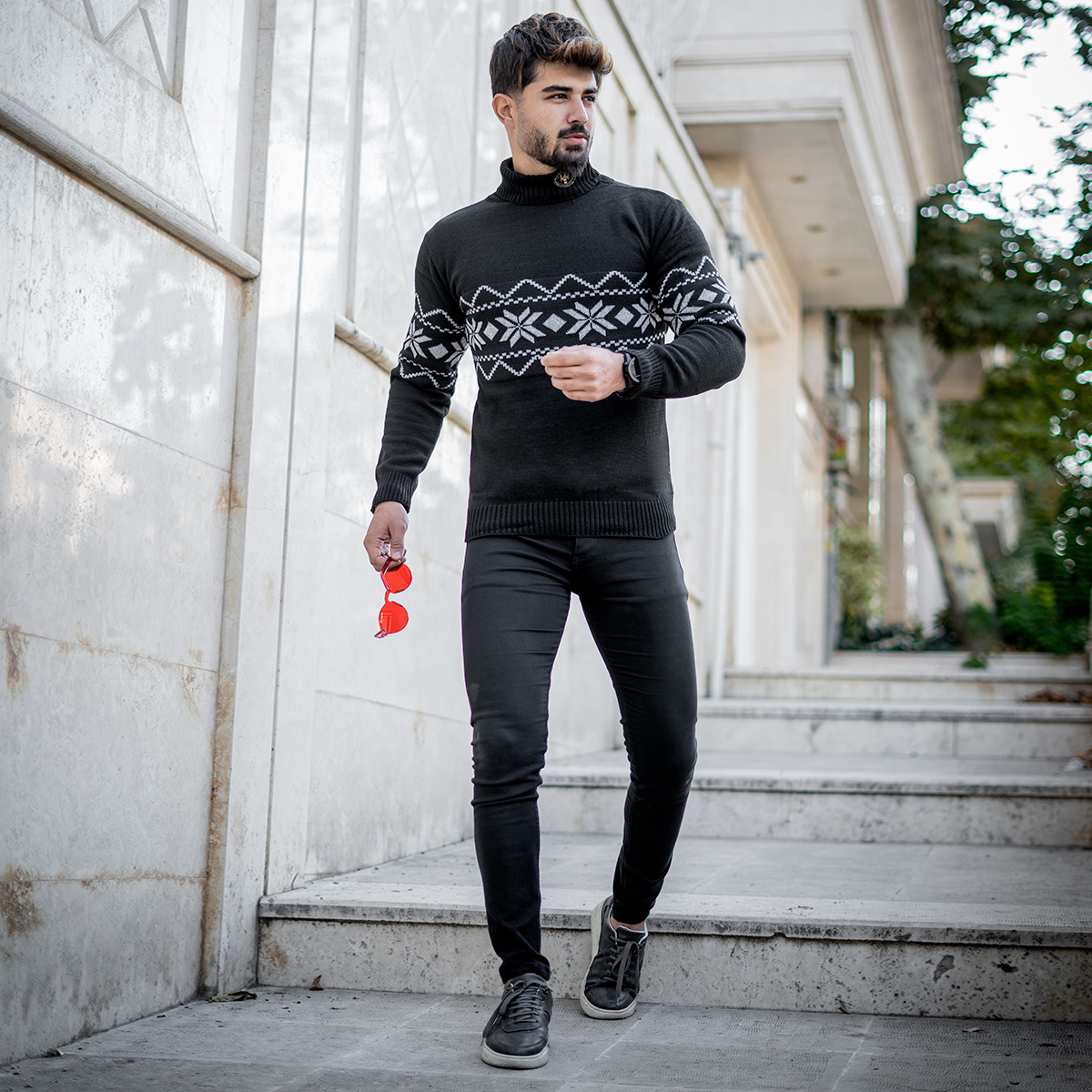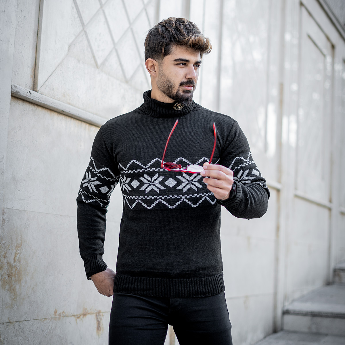 یقه اسکی مردانه مشکی حاشیه طوسی مدل Arja