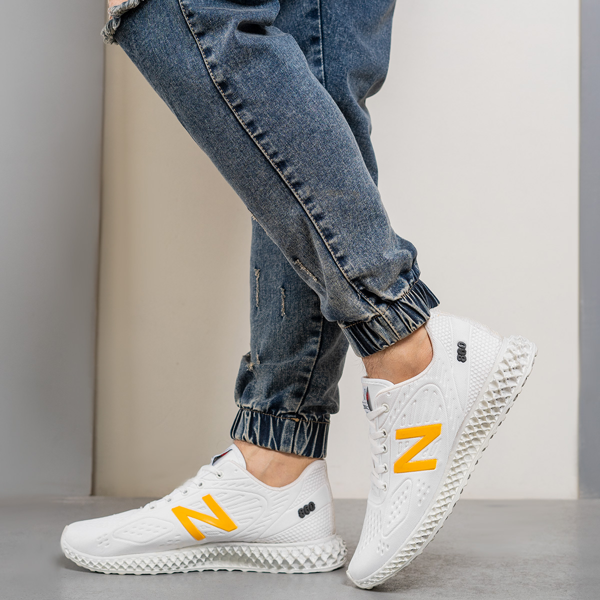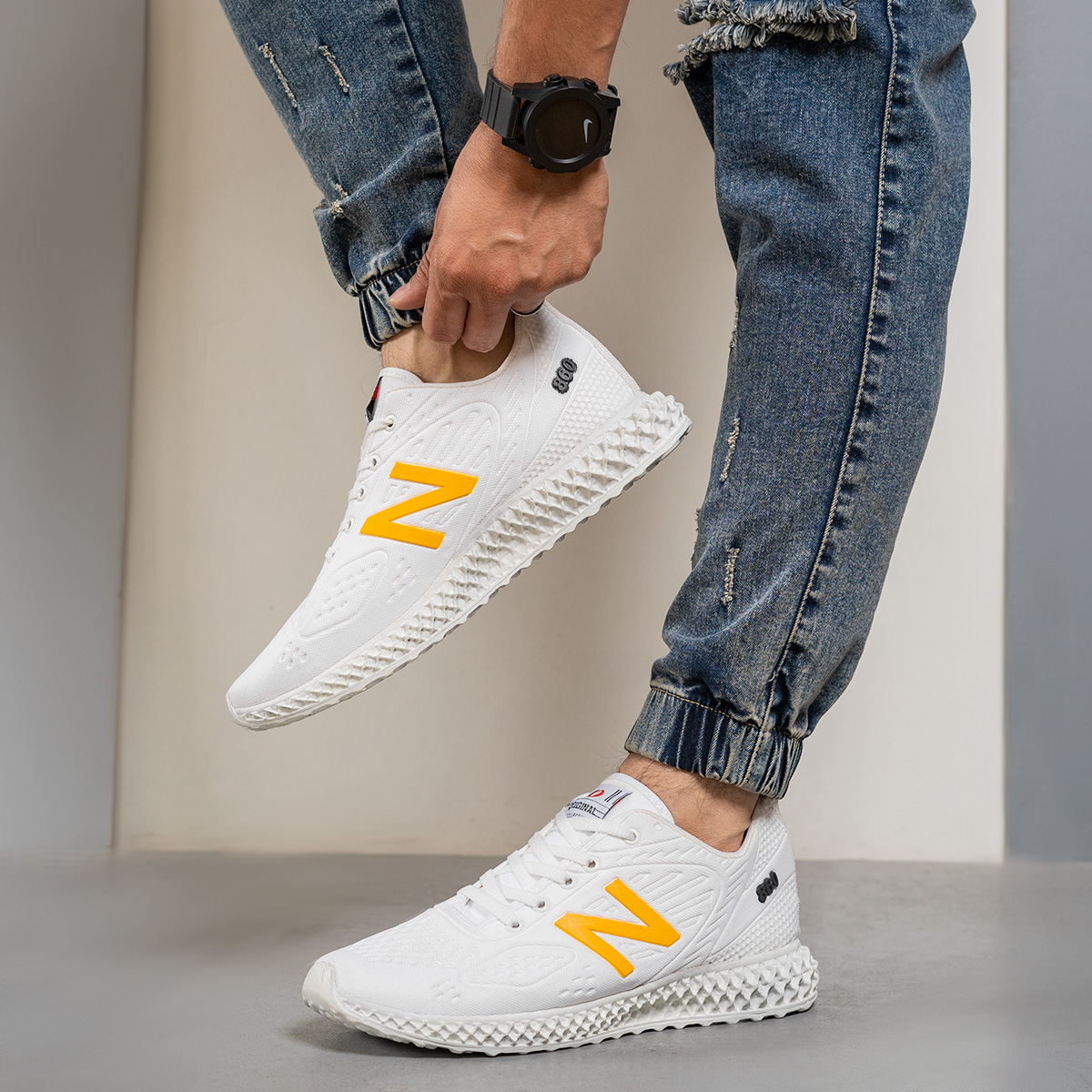 کفش ورزشی (T) نیوبالانس سفید زرد مردانه مدل Mani