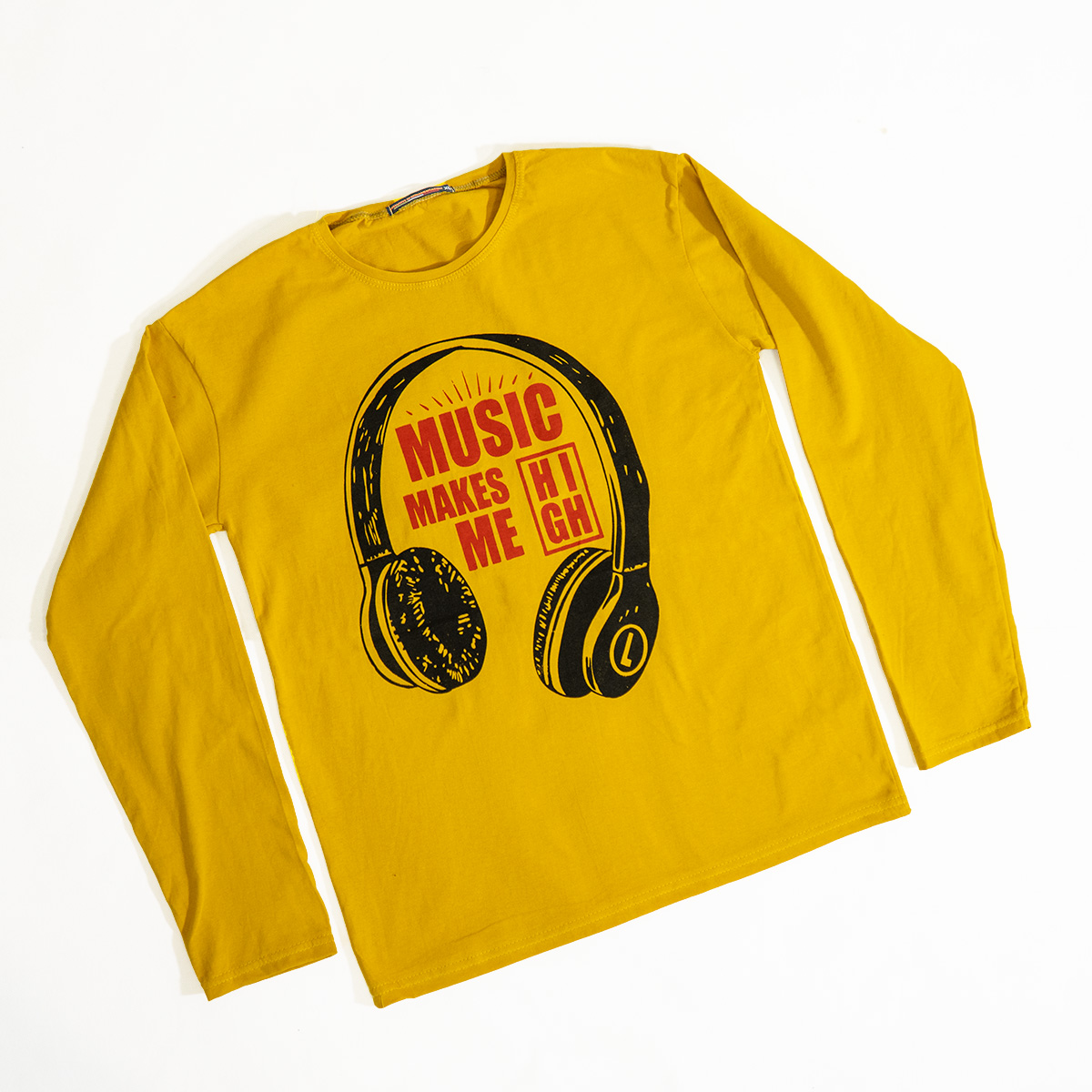 تیشرت آستین بلند مردانه طرح هدست زرد مدل O22