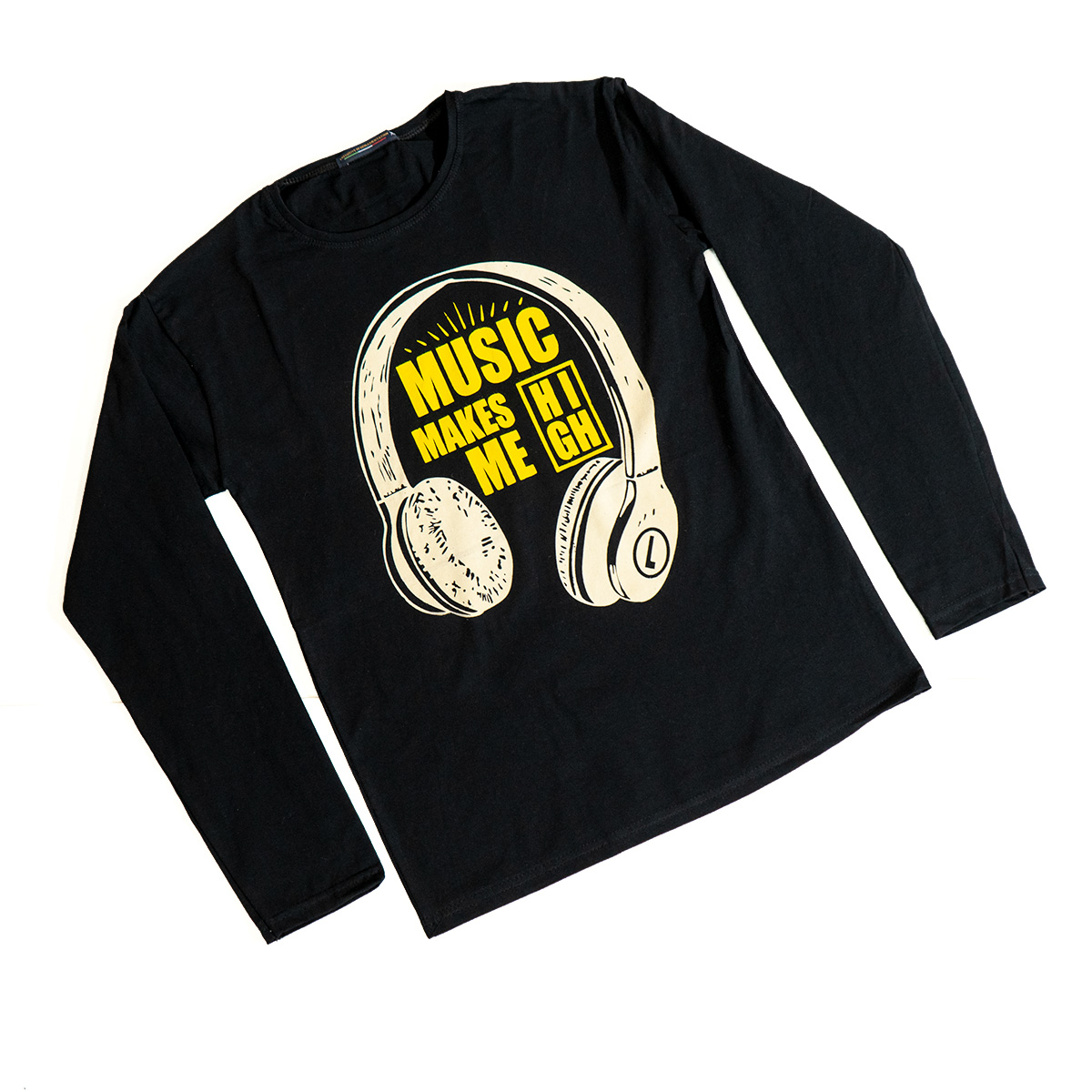 تیشرت آستین بلند مردانه طرح هدست مشکی مدل O22