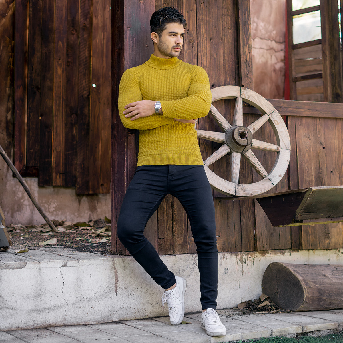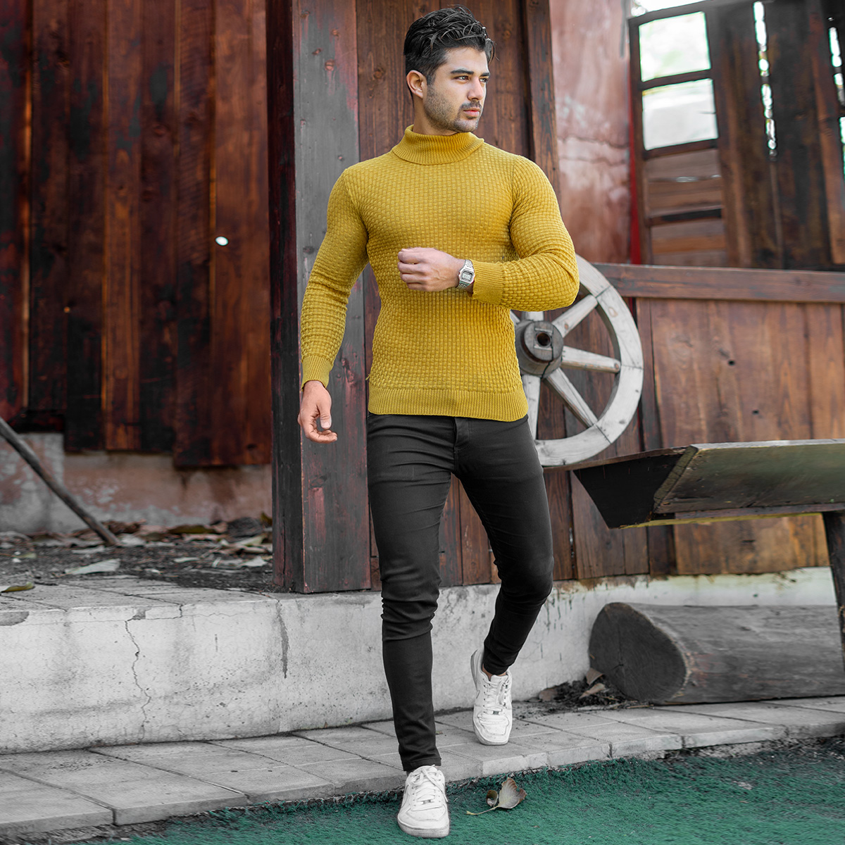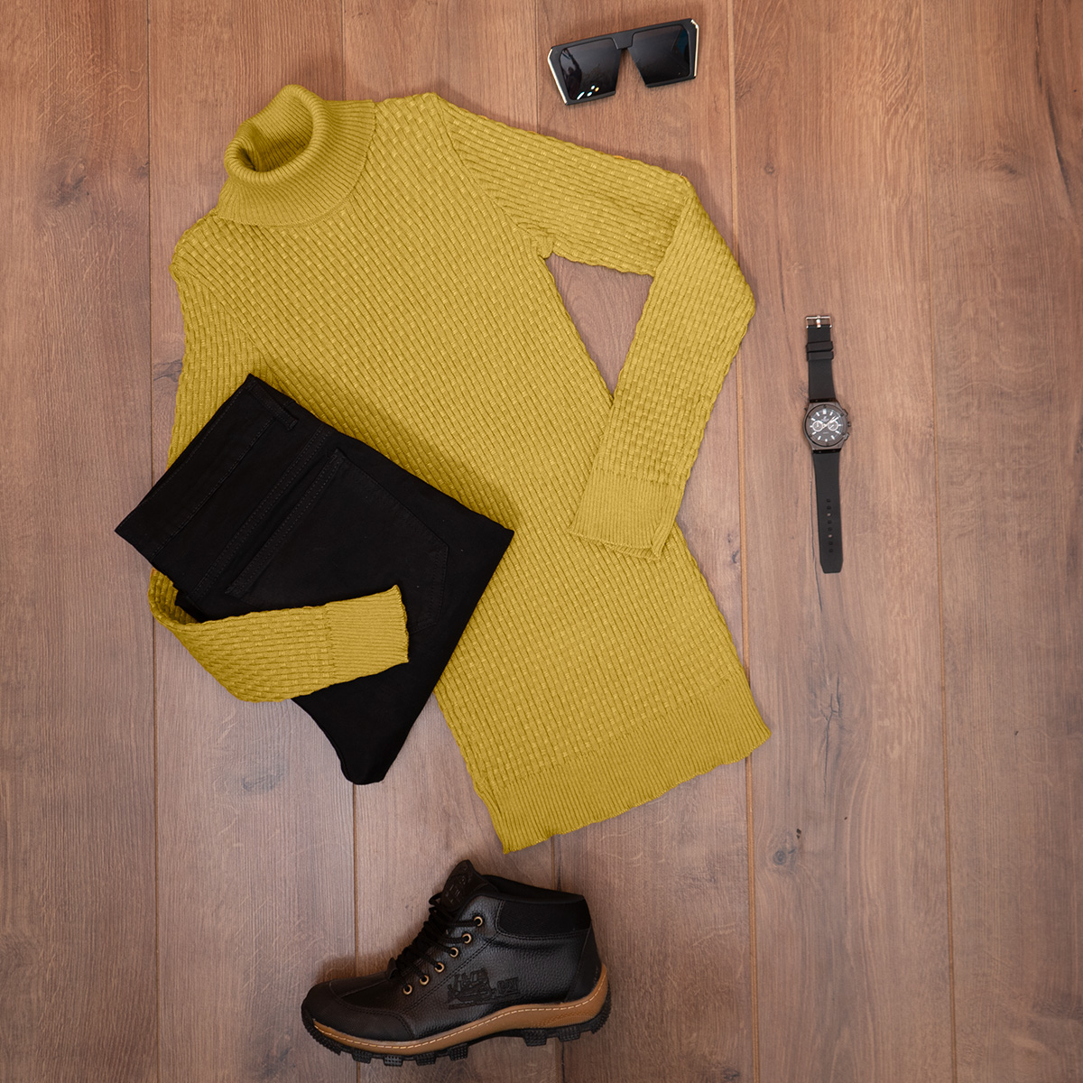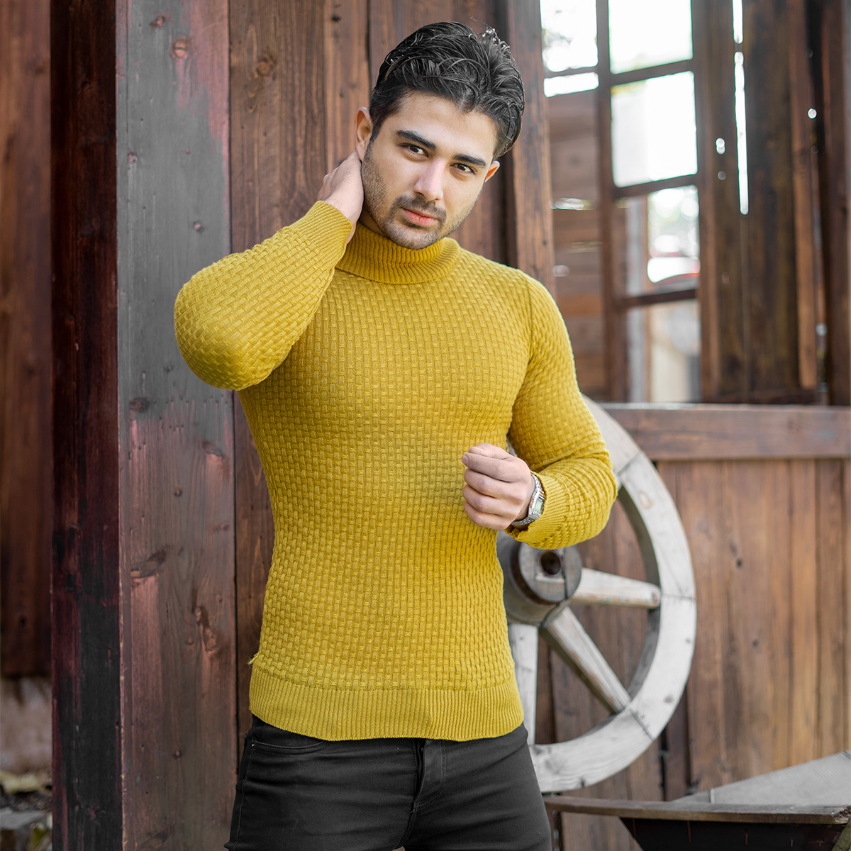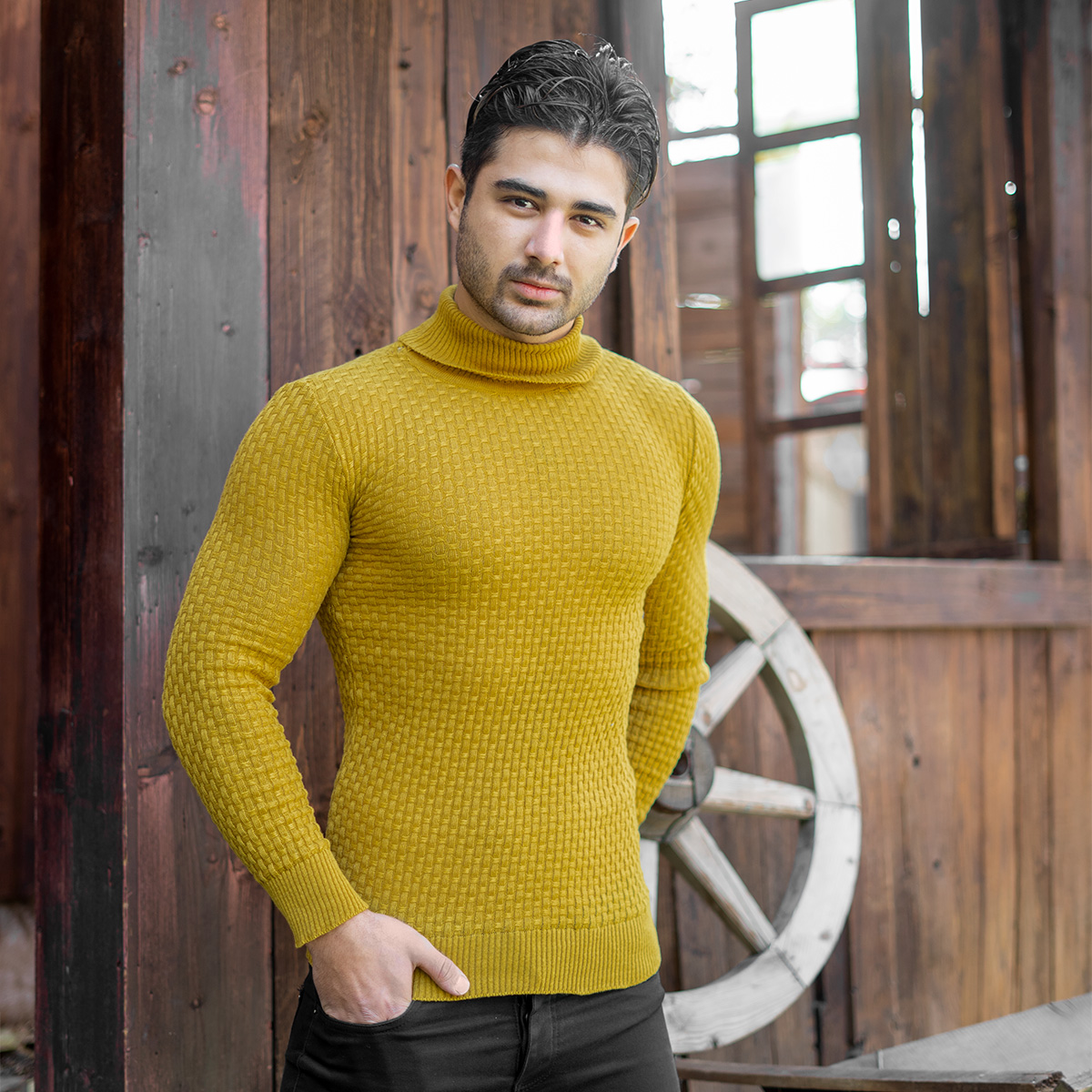 پلیور یقه اسکی مردانه خردلی مدل Oktav