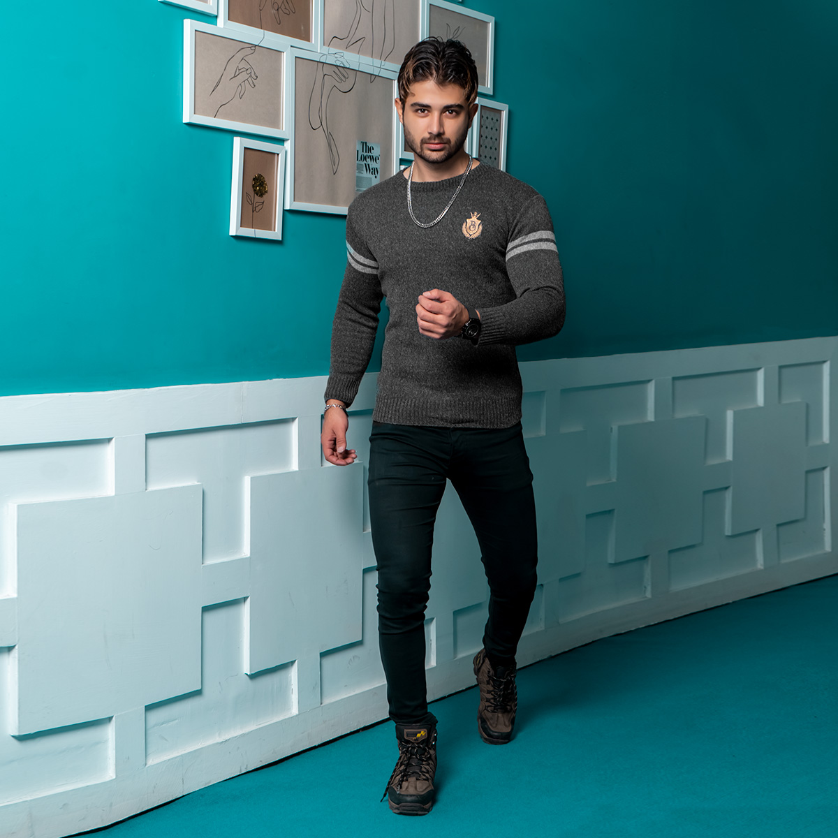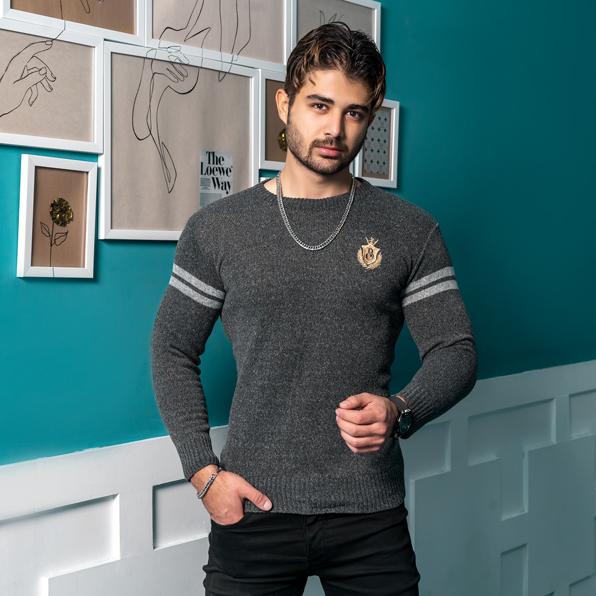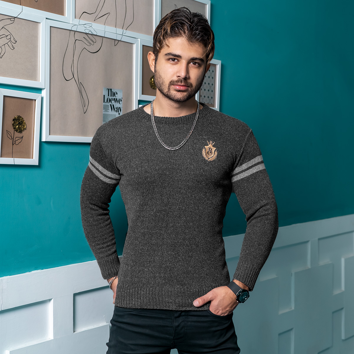 پلیور مردانه ذغالی مدل Akar