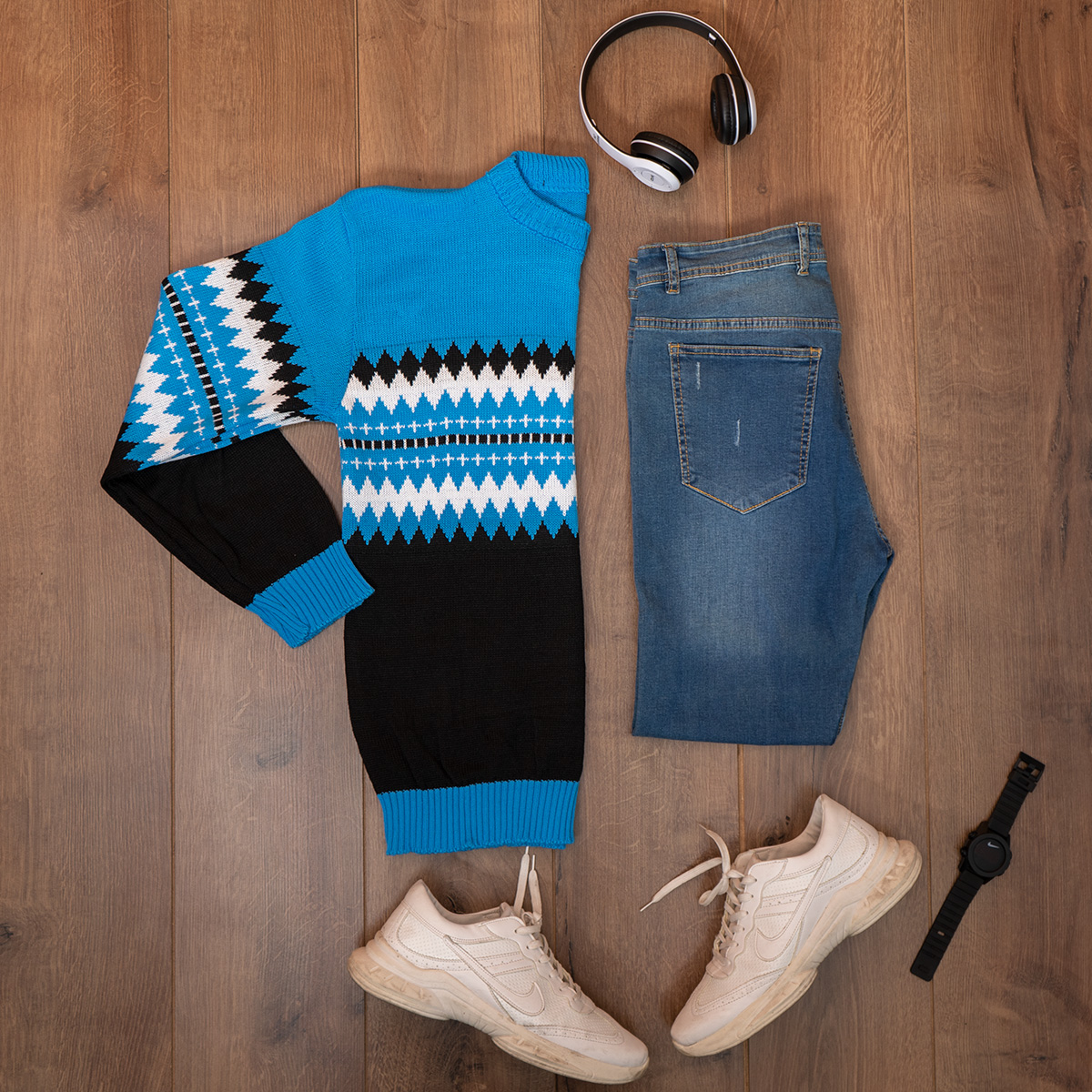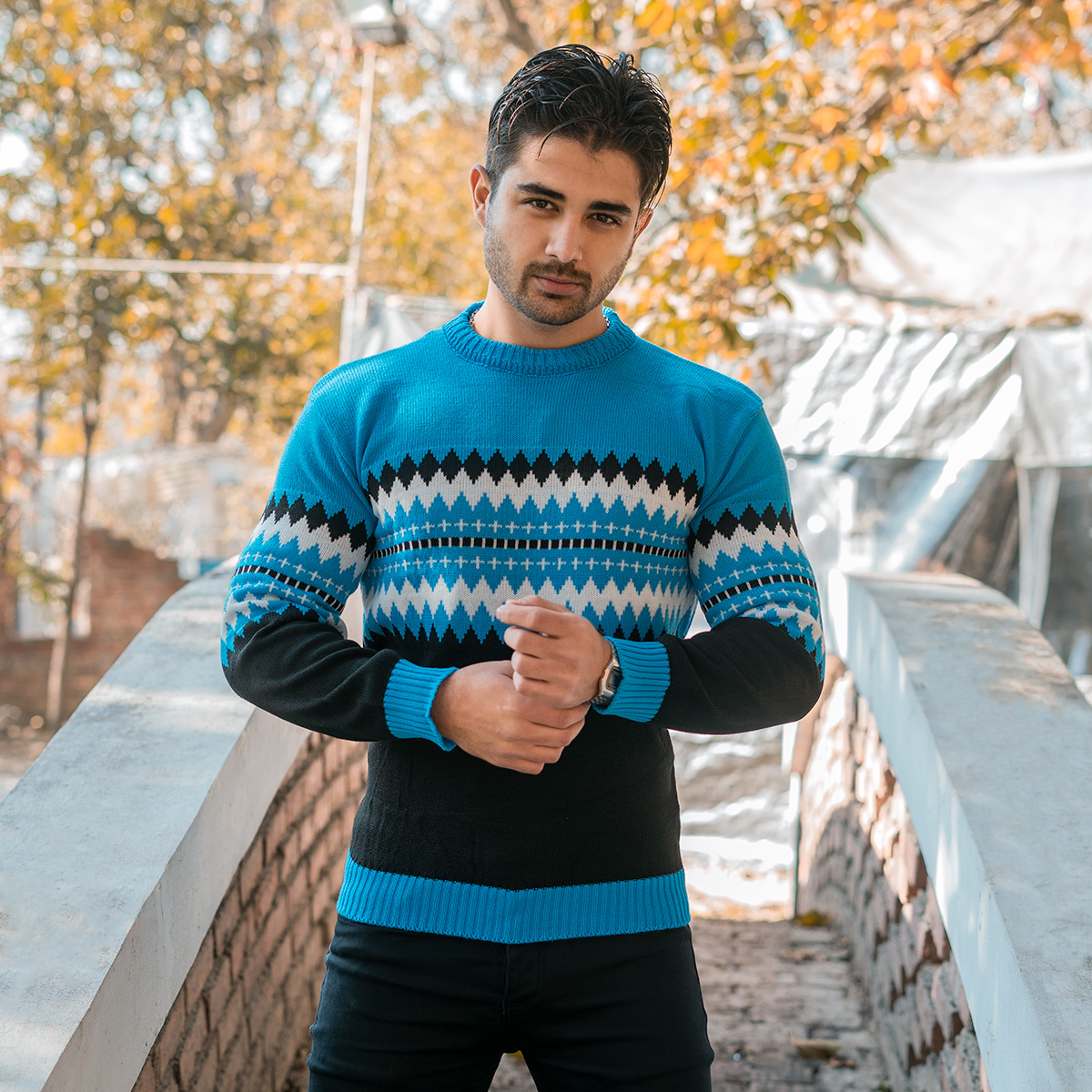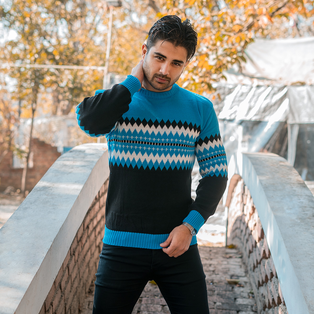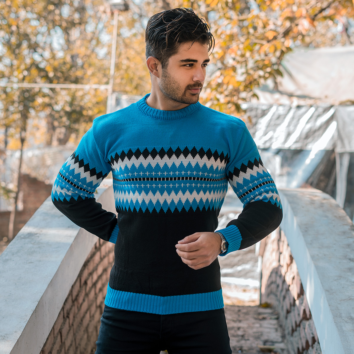 پلیور ژاکارد آبی مشکی مردانه مدلSami