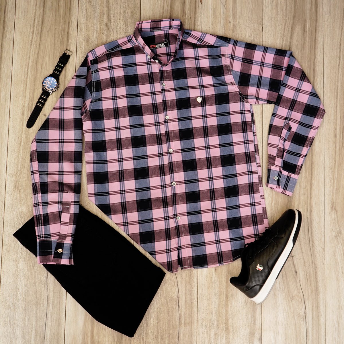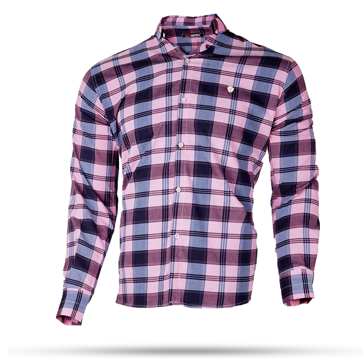 پیراهن مردانه چهارخونه صورتی مدل yami