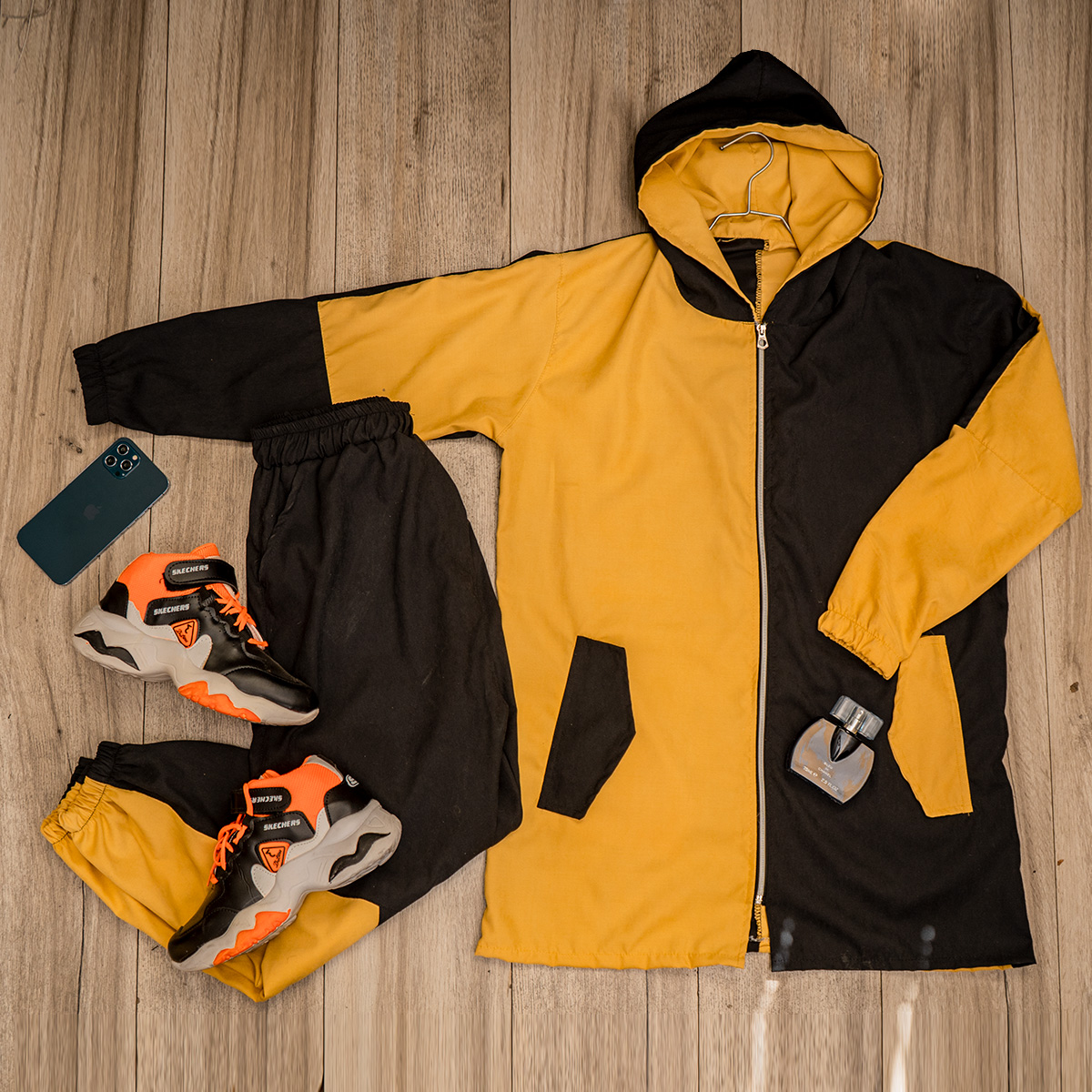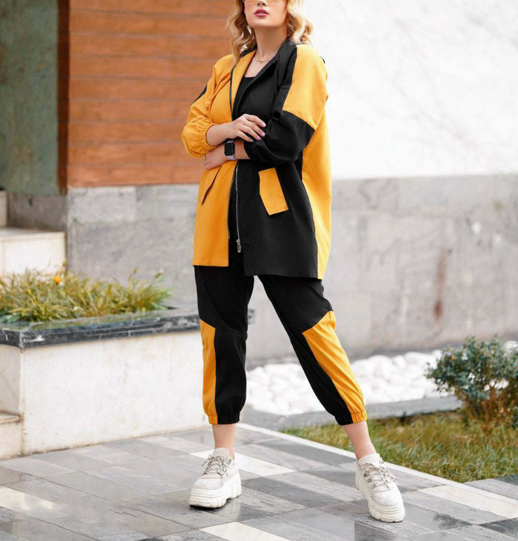 ست سوییشرت شلوار زنانه مشکی زرد مدل Tania