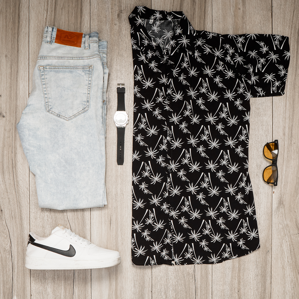 پیراهن هاوایی مردانه مشکی مدل Nanti