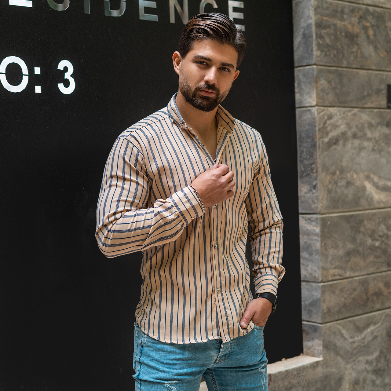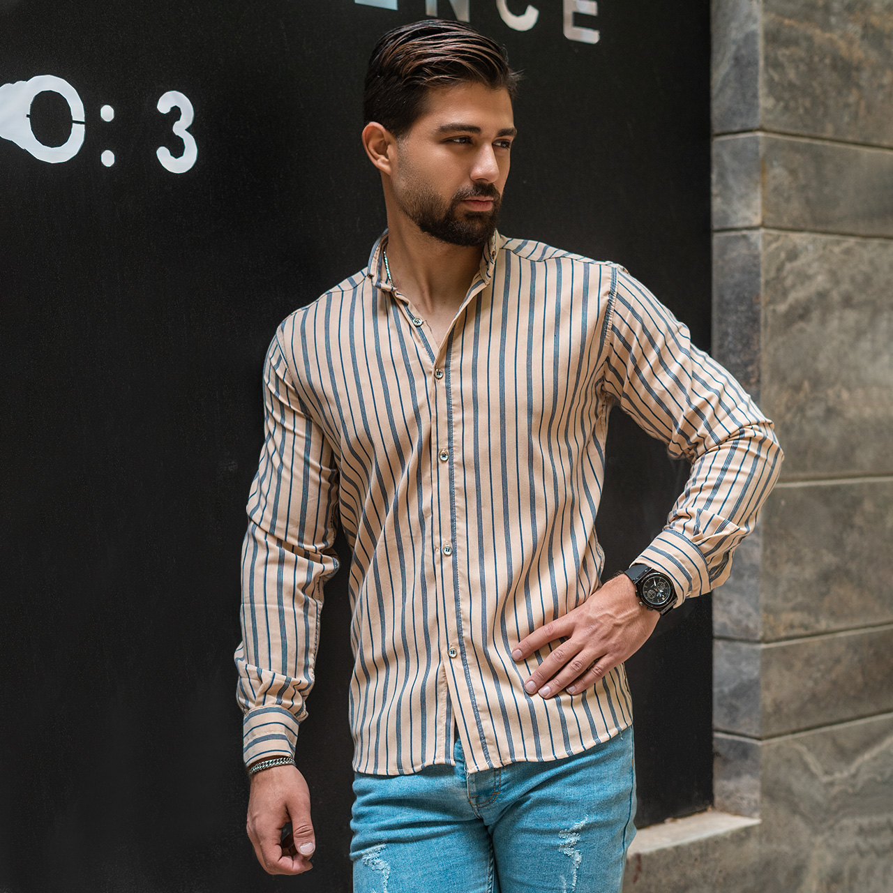 پیراهن مردانه (T)راه راه کرم مدل Ronino