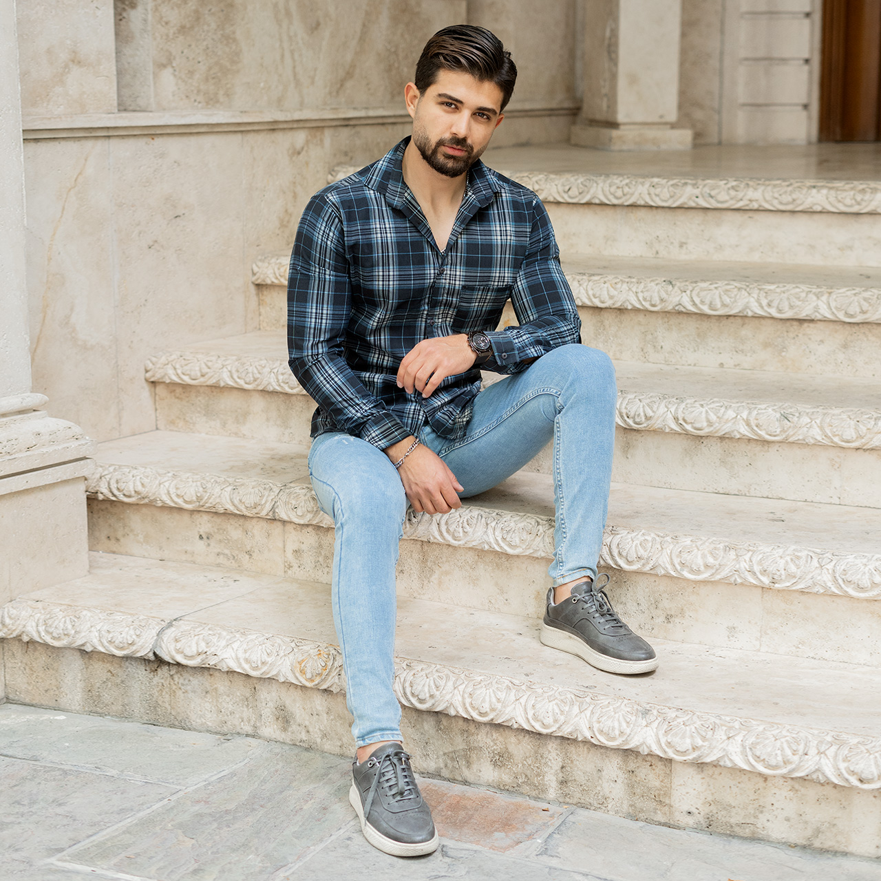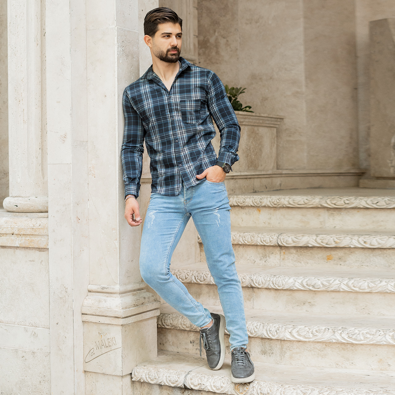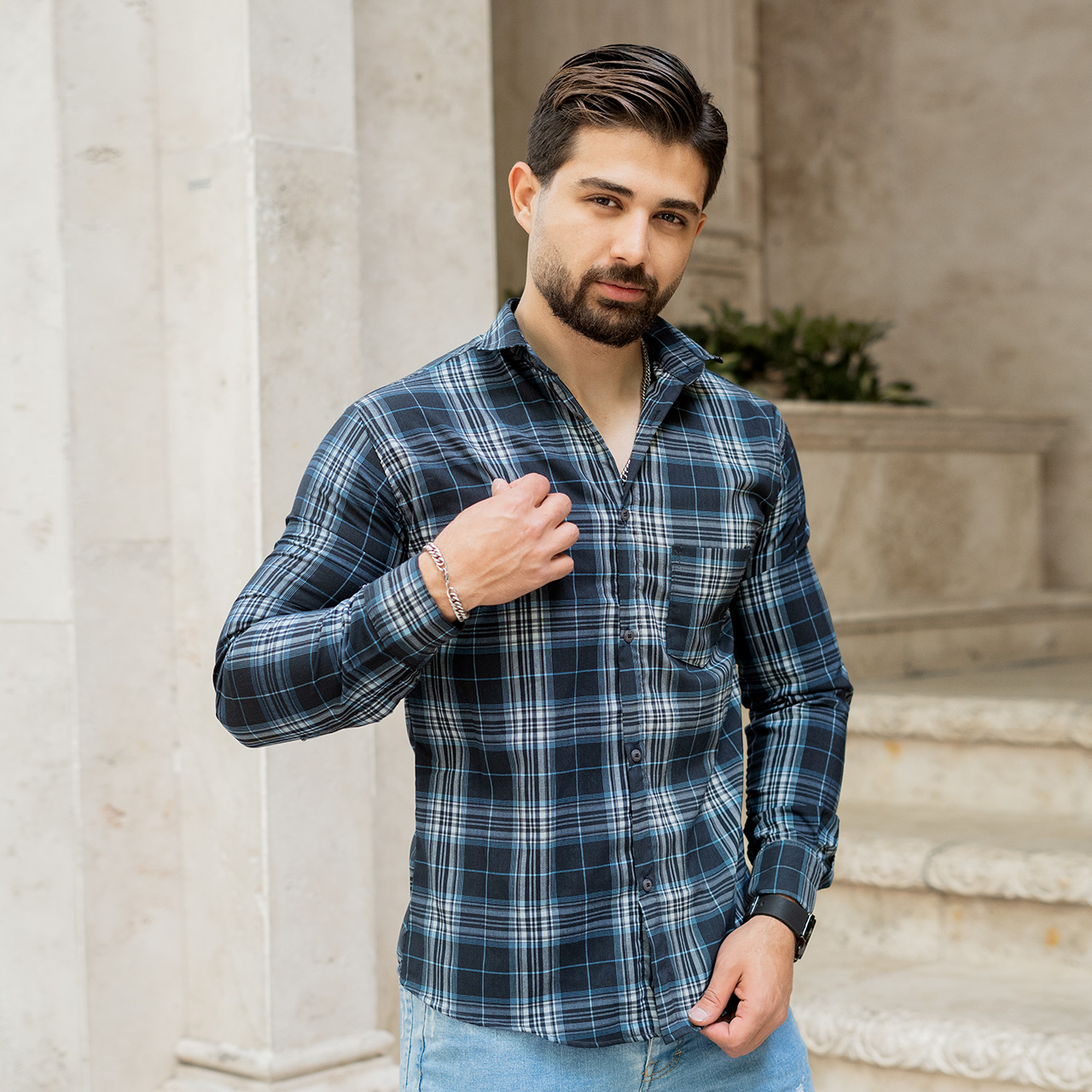 پیراهن مردانه (T)چهار خونه آبی مدلzava