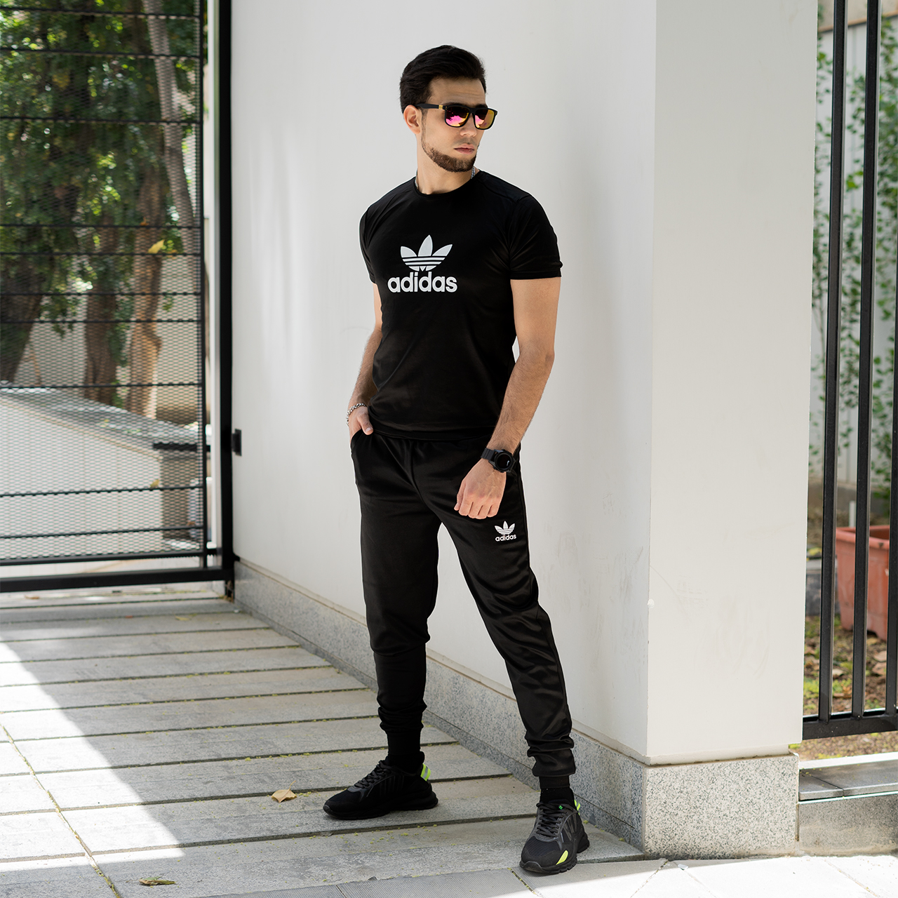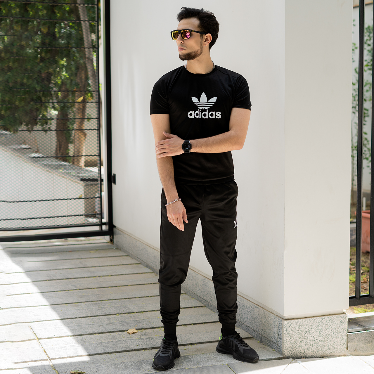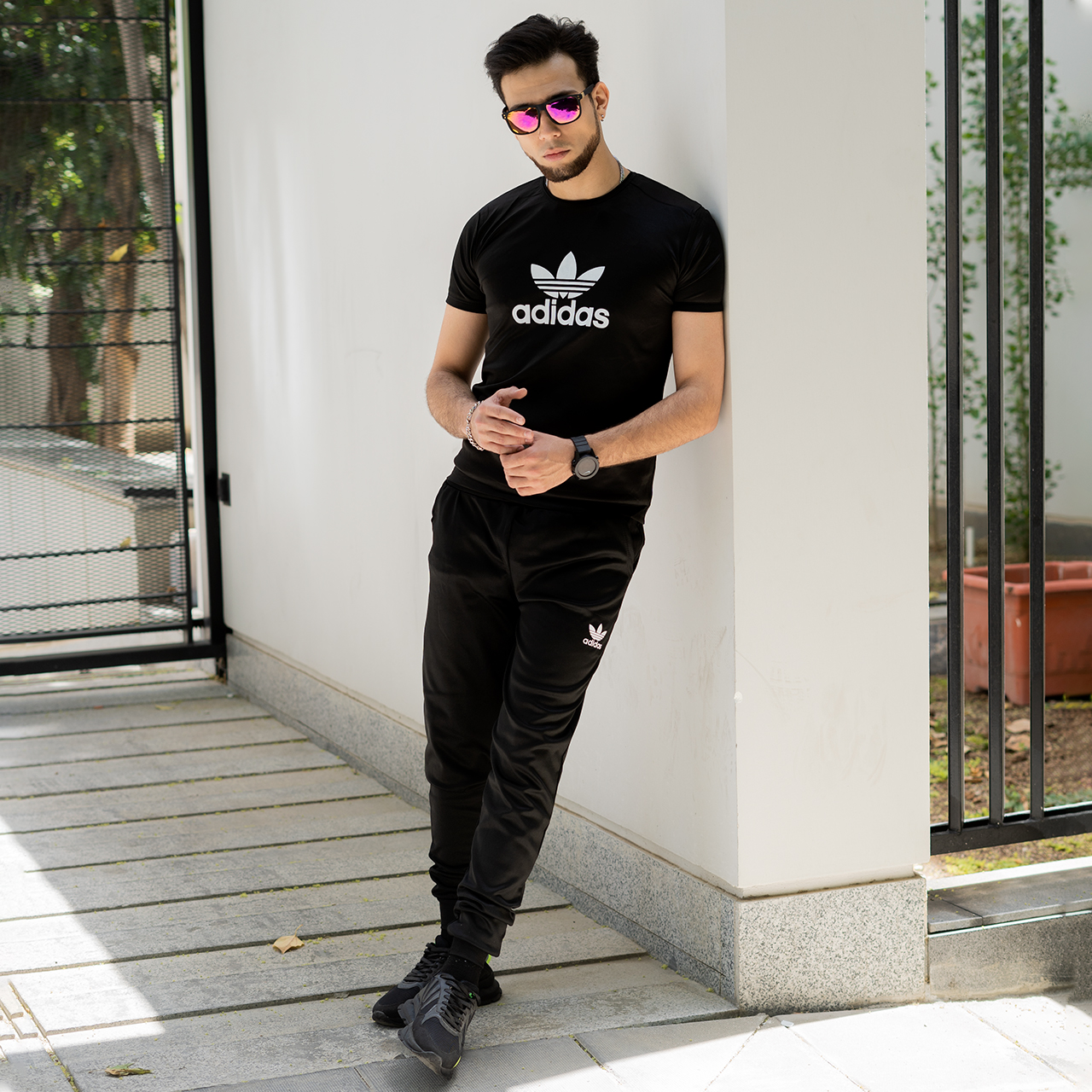 ست تیشرت شلوار آدیداس مشکی مردانه مدل Otava