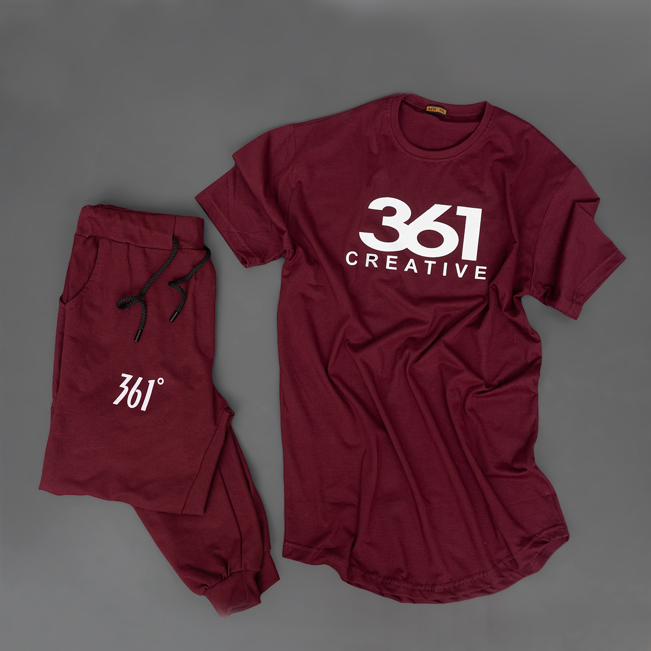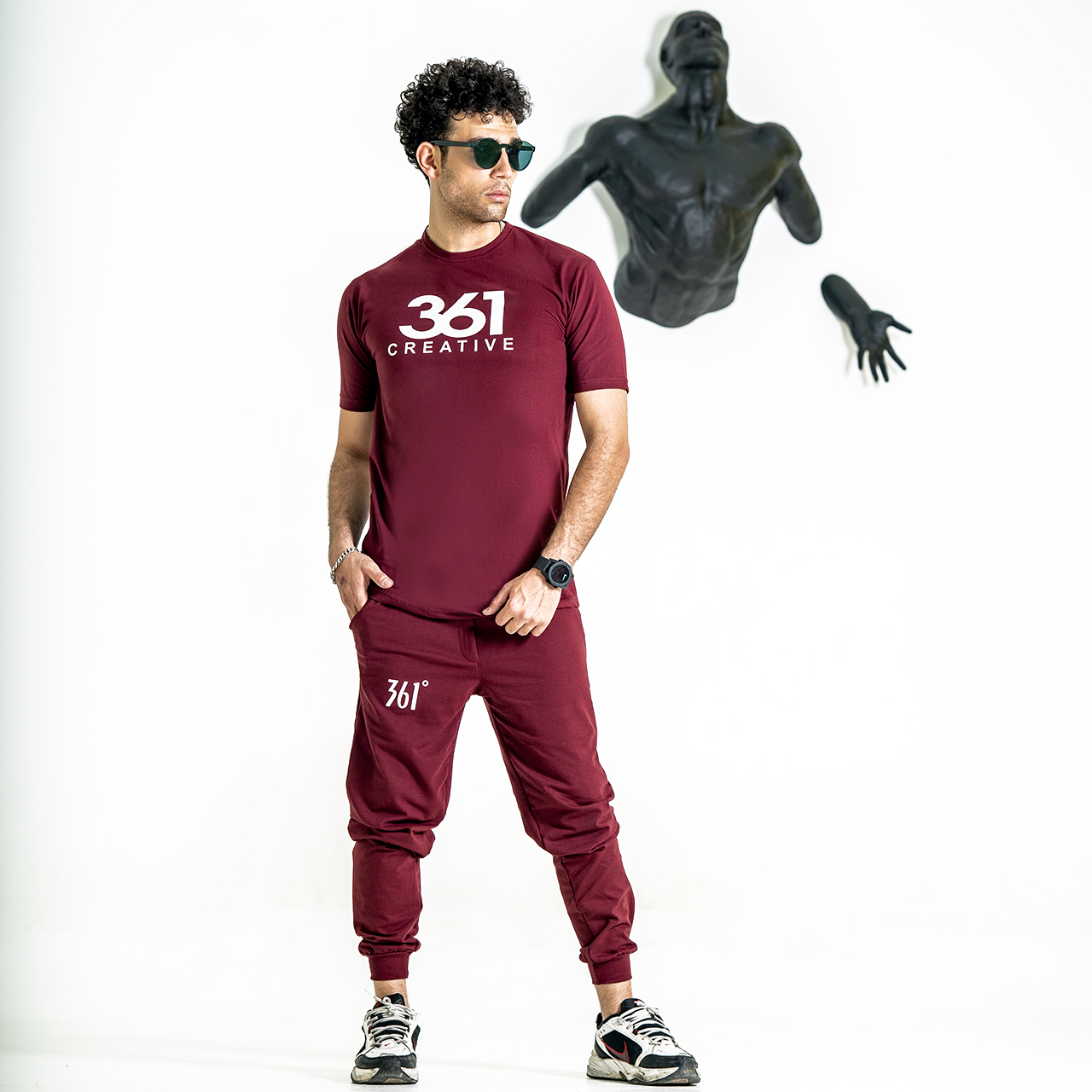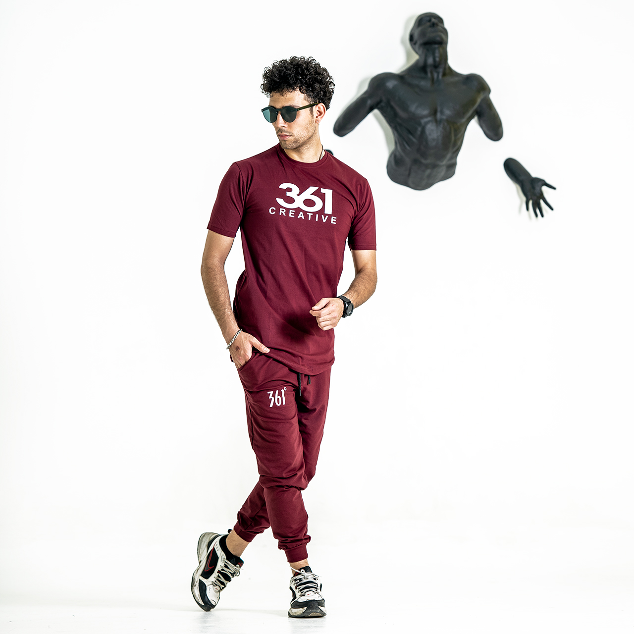 ست تیشرت شلوار مردانه زرشکی مدل 361