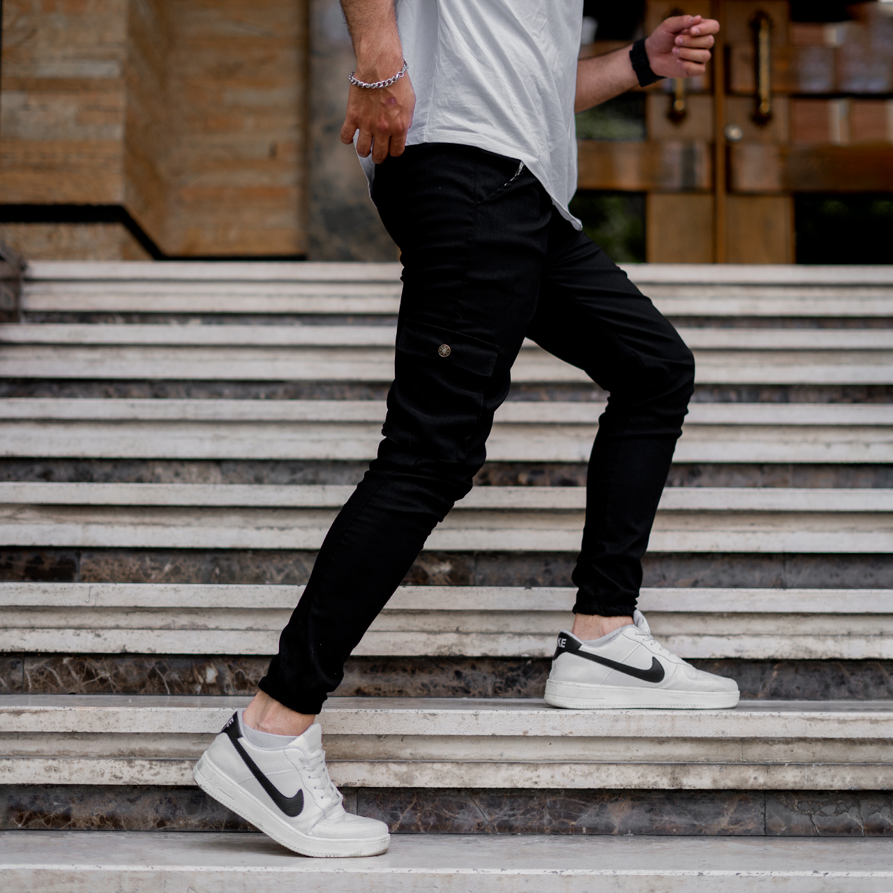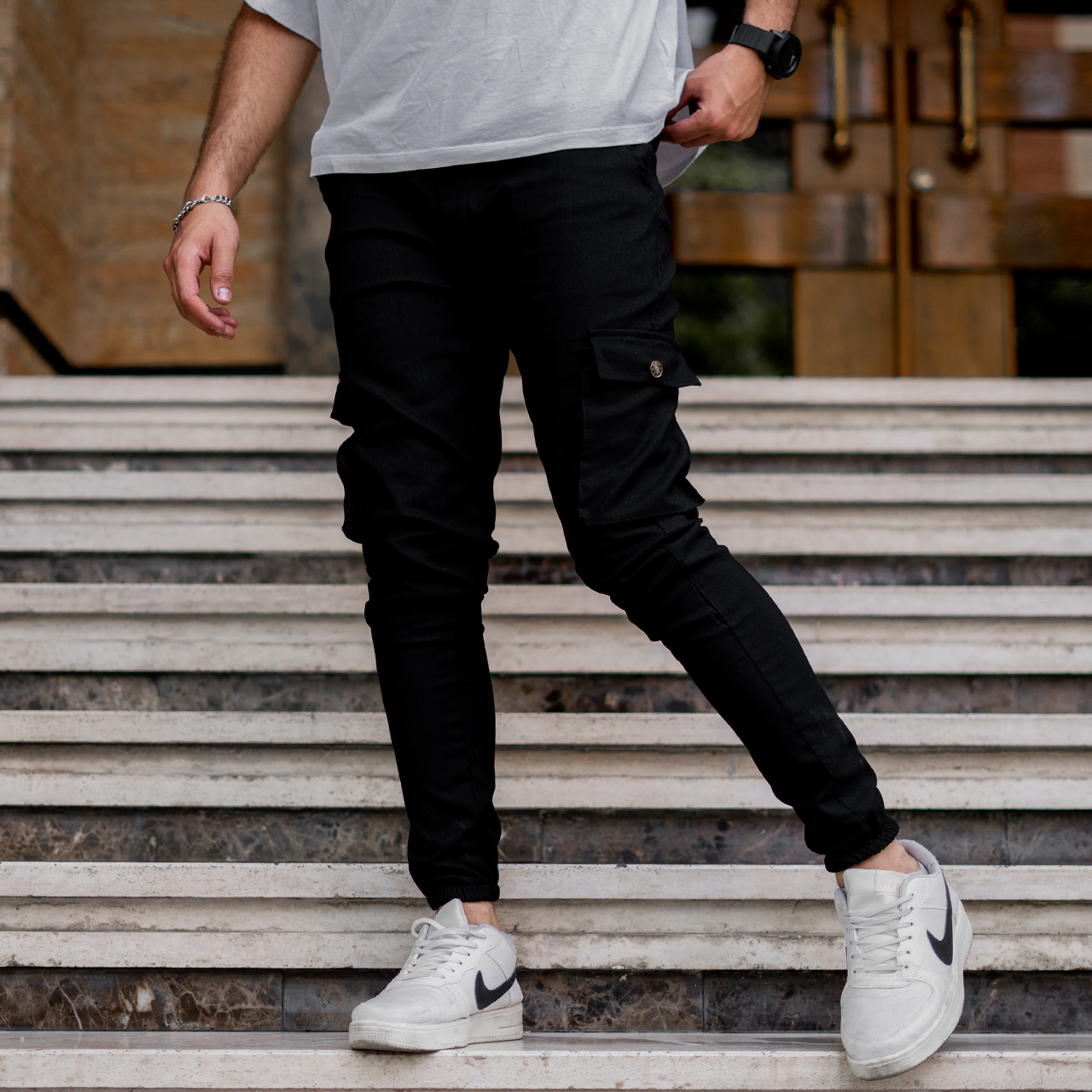 شلوار اسلش مردانه جیب دکمه ای مشکی مدل baten