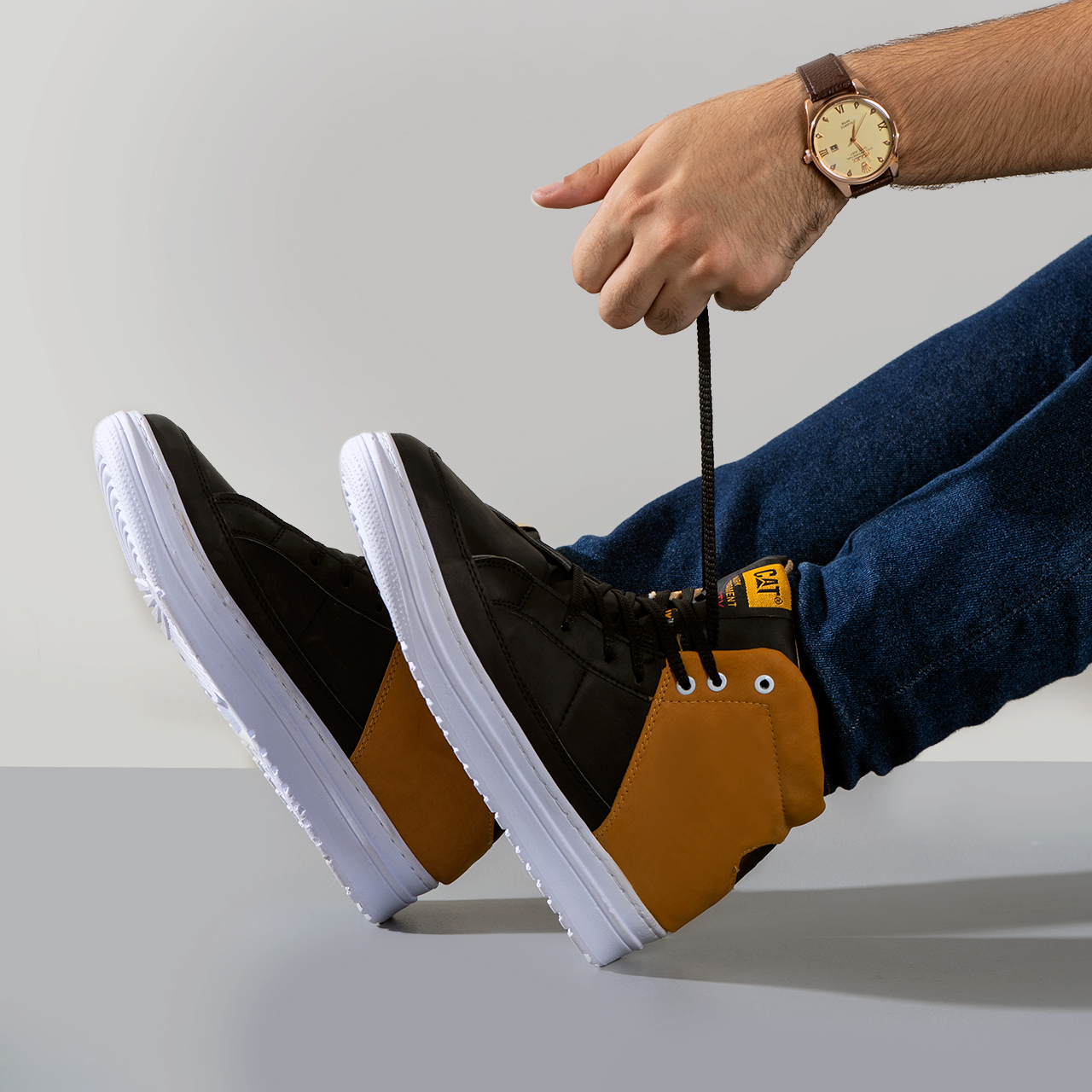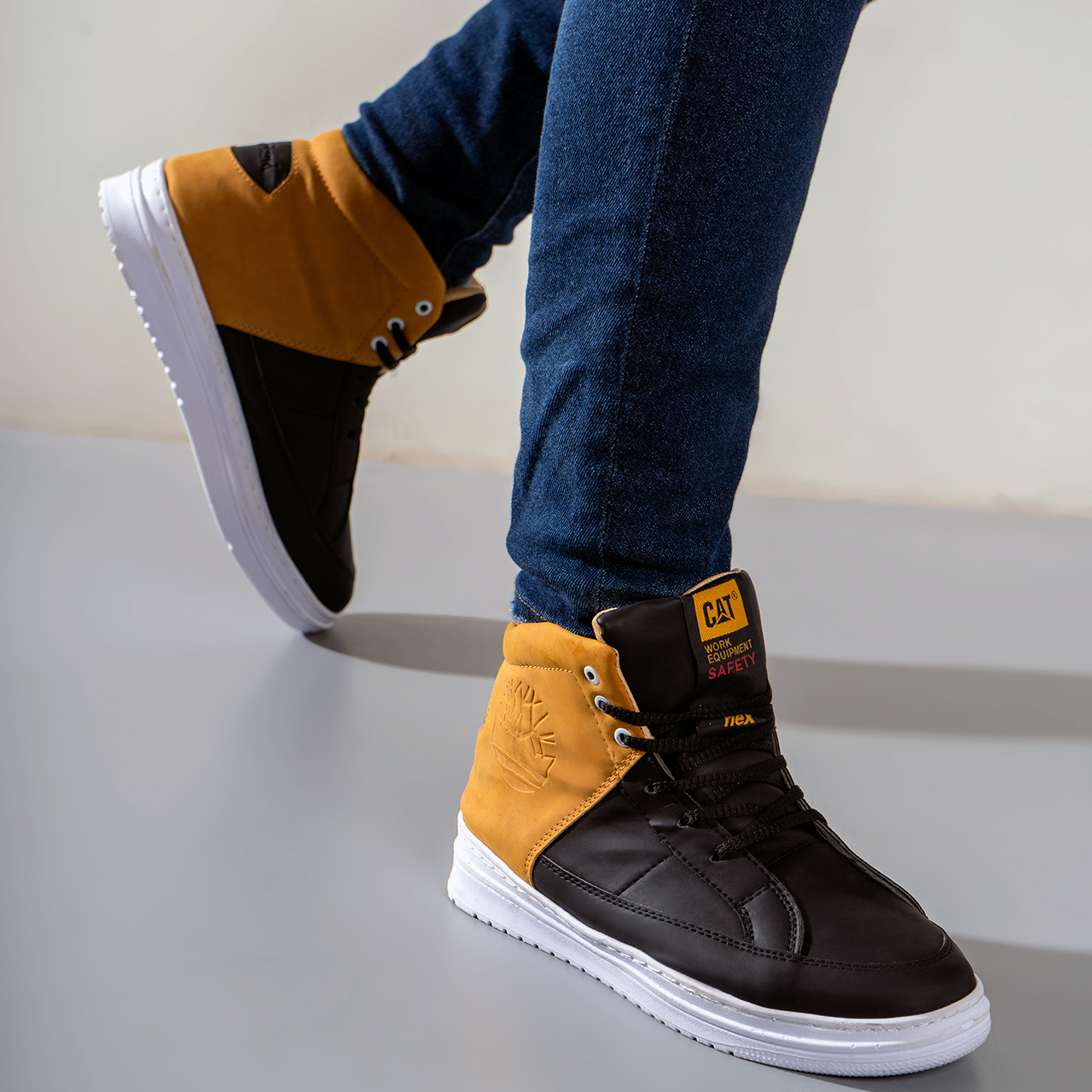 کفش ساقدار مردانه مشکی عسلی مدل R88