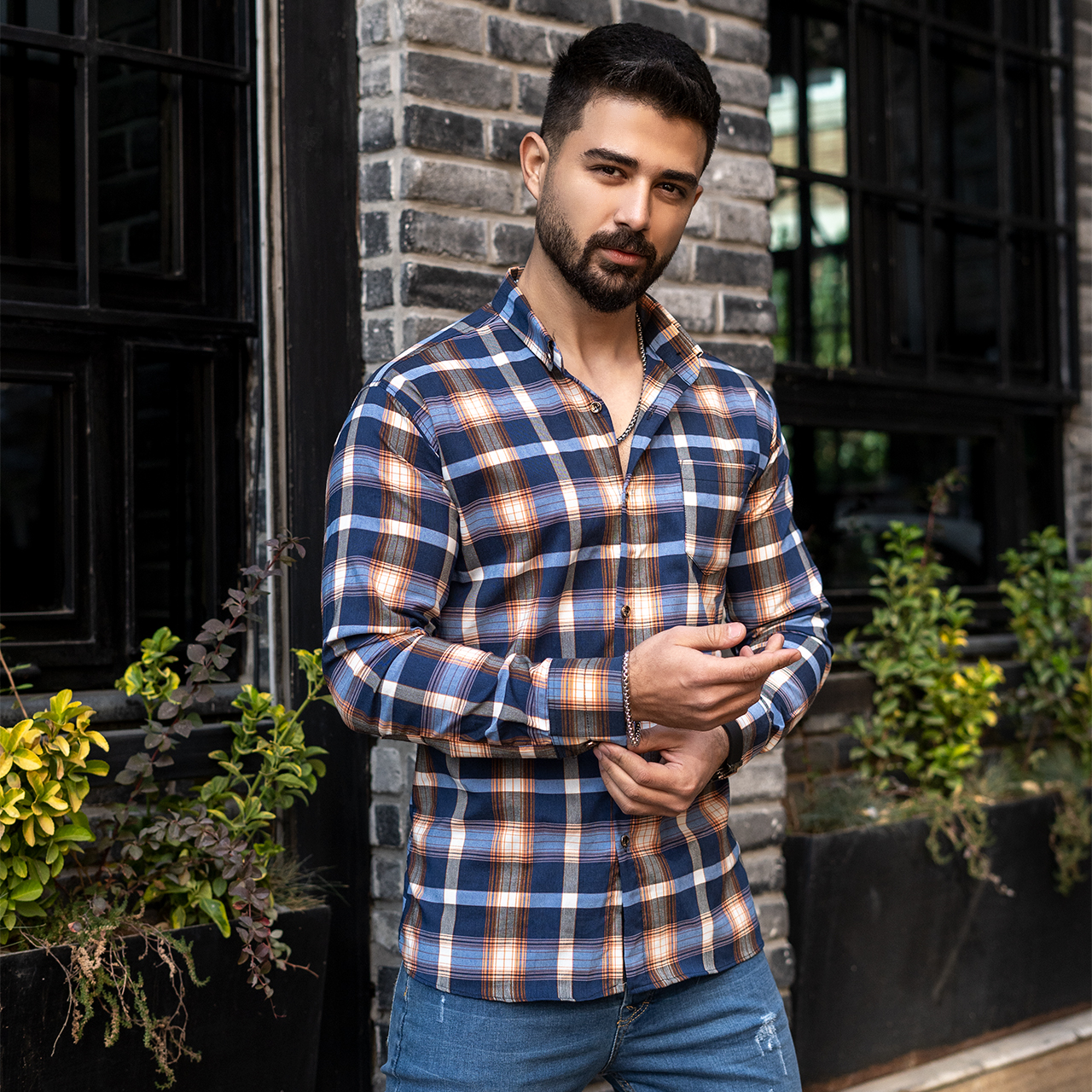 پیراهن مردانه سرمه ای نارنجی مدل Redi
