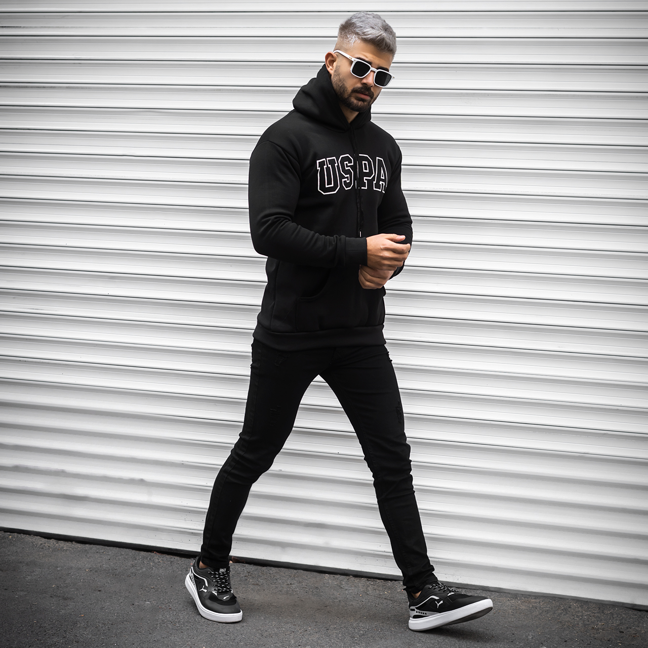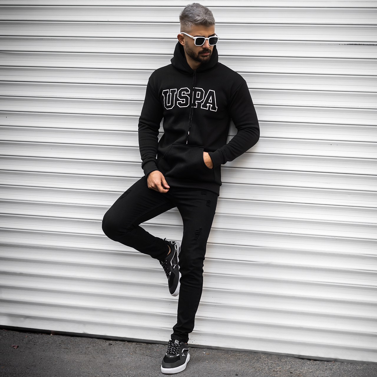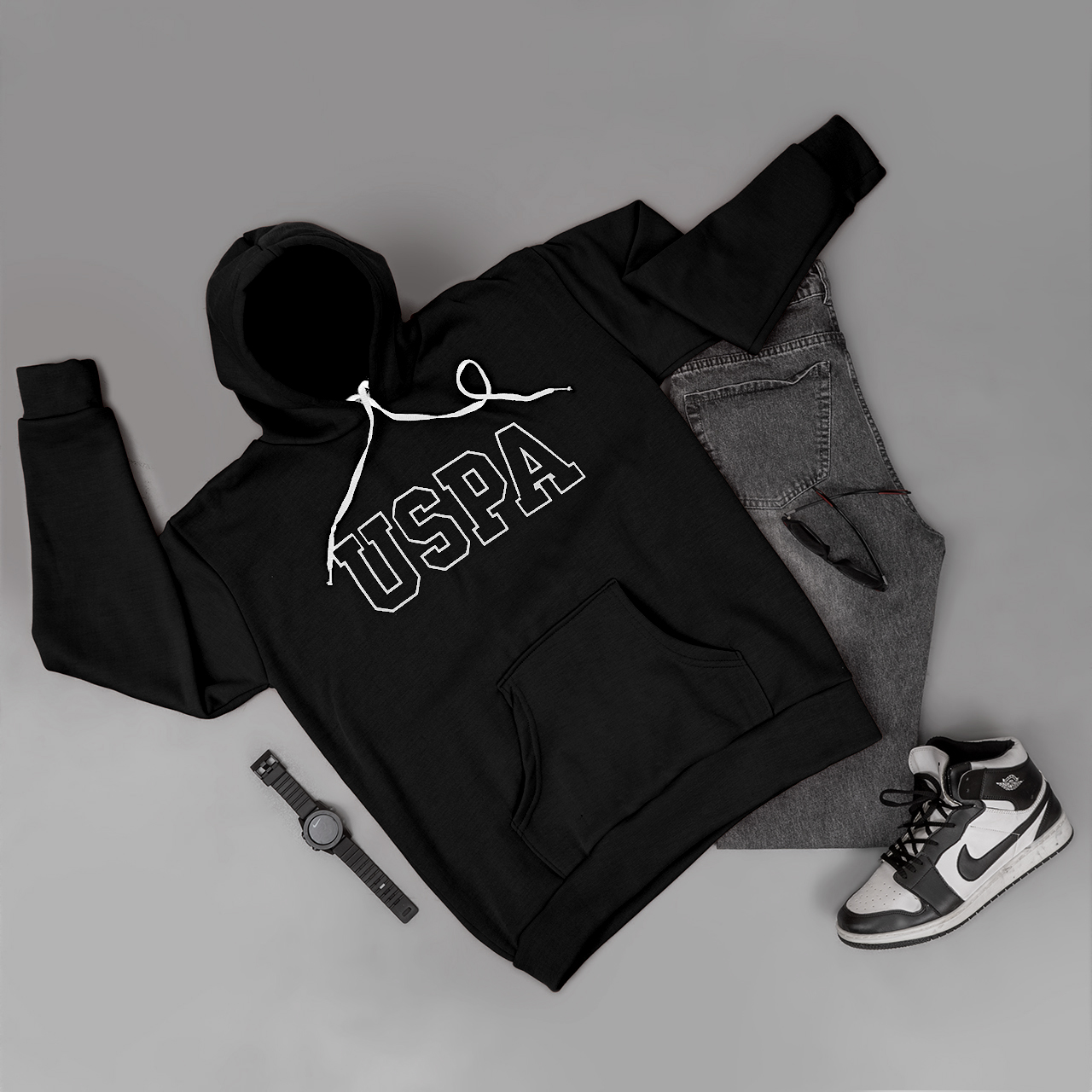 هودی مردانه USPA مشکی مدل Sarmad