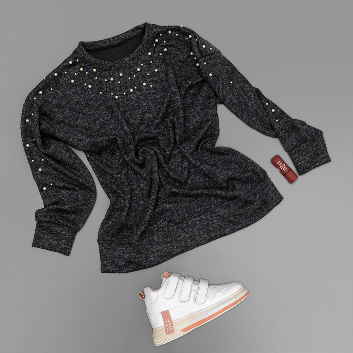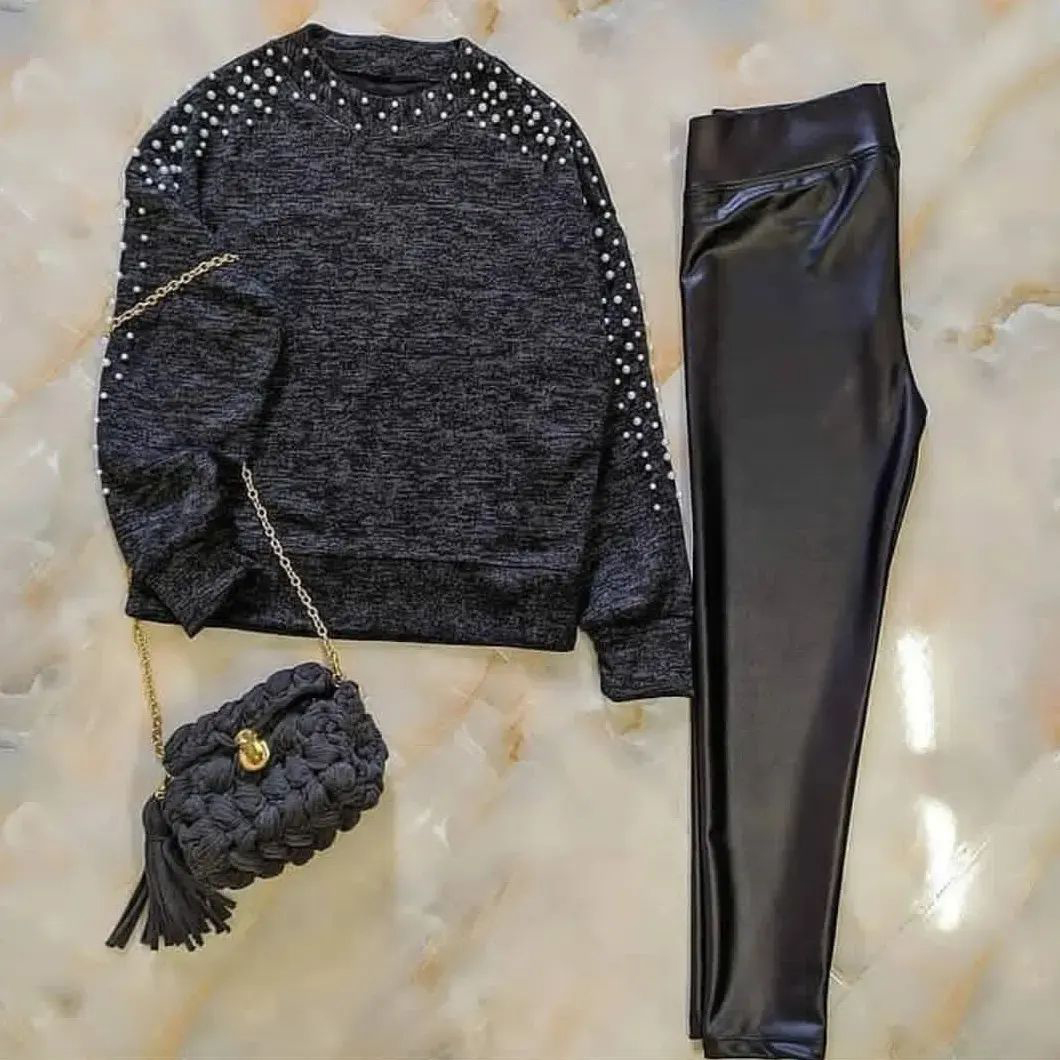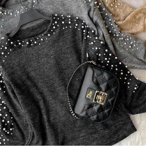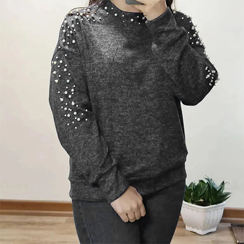بلوز مرواریدی ذغالی دخترانه مدل venos