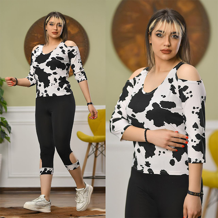 ست دخترانه تیشرت شلوارک طرح گاو مدل Sevin