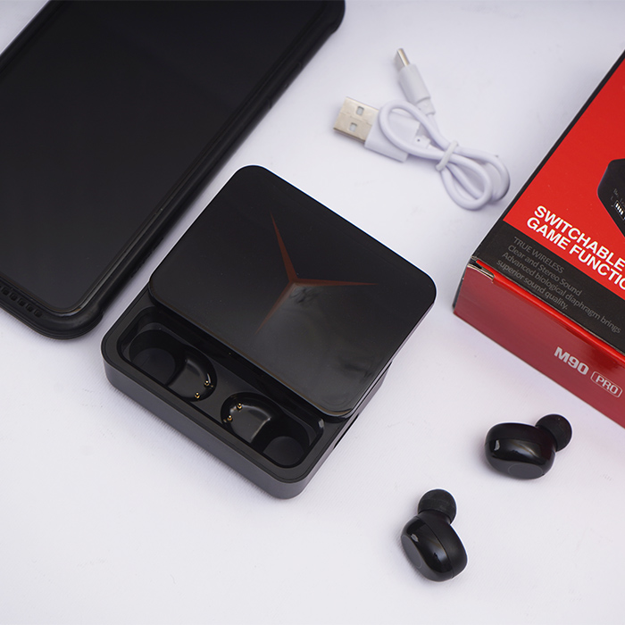 هندزفری های بیسیم M90Pro یکی از بهترین هندزفری های بازار در رنج قیمتی خود است.نسخه بلوتوثی این هندزفری 5.3 است که نتیجه آن اتصال پایدار و برقراری باکیفیت هندزفری است باتری هدفون ها 40 میلی آمپر است و قابلیت پخش موسیقی و مکالمه را تا 4 ساعت برای شما فراهم می کند. باتری کیس هندزفری هم 1200 میلی آمپر است و قابلیت پاوربانک دارد و شما می توانید گوشی خود را با آن شارژ کنید.