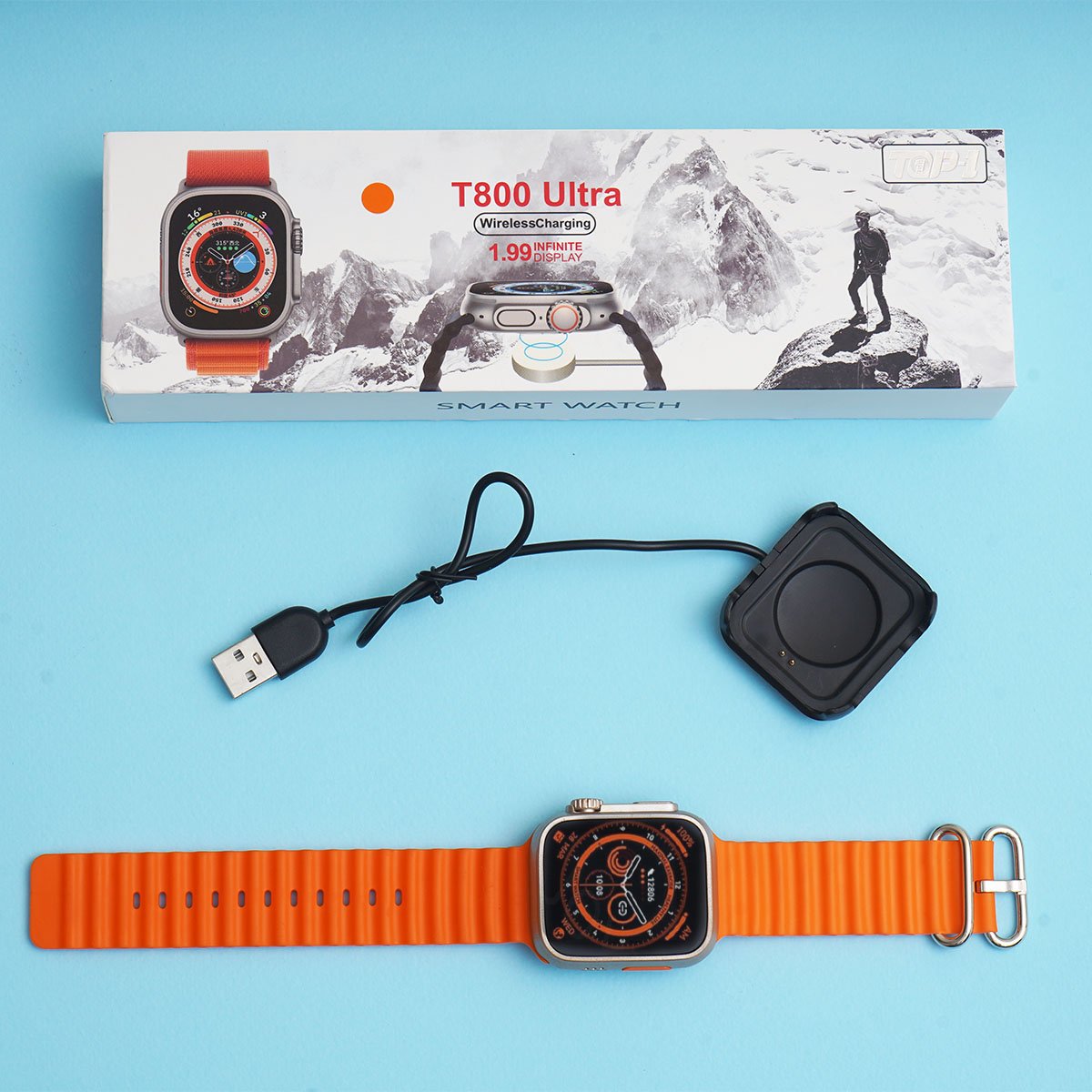 ساعت T800 ultra دارای شارژ وایرلسی می باشد که با استفاده از آداپتور 2 آمپر می تواند صفر تا 100 باتری ساعت را در حدود 2 تا 3 ساعت شارژ نمایید.