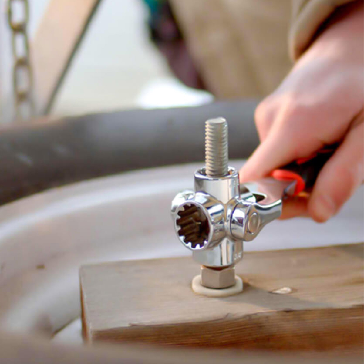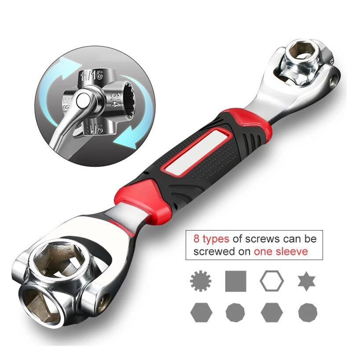 این آچار همه کاره 360 درجه همانند آچار فرانسه که تمامی مهره های موجود را می تواند باز کند براحتی قابل استفاده است و می تواند علاوه بر مهره های معمولی کلیه پیچ هایی باشکلهای مختلف را نیز باز کند.هرکجا که چیزی نیاز به باز شدن داشته باشد این آچار می تواند کارامد باشد.همچنین این آچار کار در زاویه 45 درجه و چرخش 360 درجه ی آچار راحتی هرچه بیشتر و تسریع امور تعمیرات را برای شما فراهم میکند. با انتخاب بین اندازه های مختلف، فورا ابزار مورد نیاز برای کار را خواهید داشت. آچار همه کاره 360 درجه دارای دسته لاستیکی ضد لغزش است. این یک آچار چند منظوره است که می تواند برای تعمیرات خودرو، تعمیر و نگهداری برق، تعمیرات اورژانس خانه و مبلمان و غیره استفاده شود.از باز کردن درب نوشابه گرفته تا پیچیدن مهره چرخ ماشین.با این آچار می توانید هر چیزی که میخواهید را به راحتی هر چه تمام تر باز کنید.از شیر آب و شوفاژ گرفته تا مهره های خیلی ریز.با این وسیله دیگر شما نیاز به حمل و نگهداری آچار های دیگر ندارید.