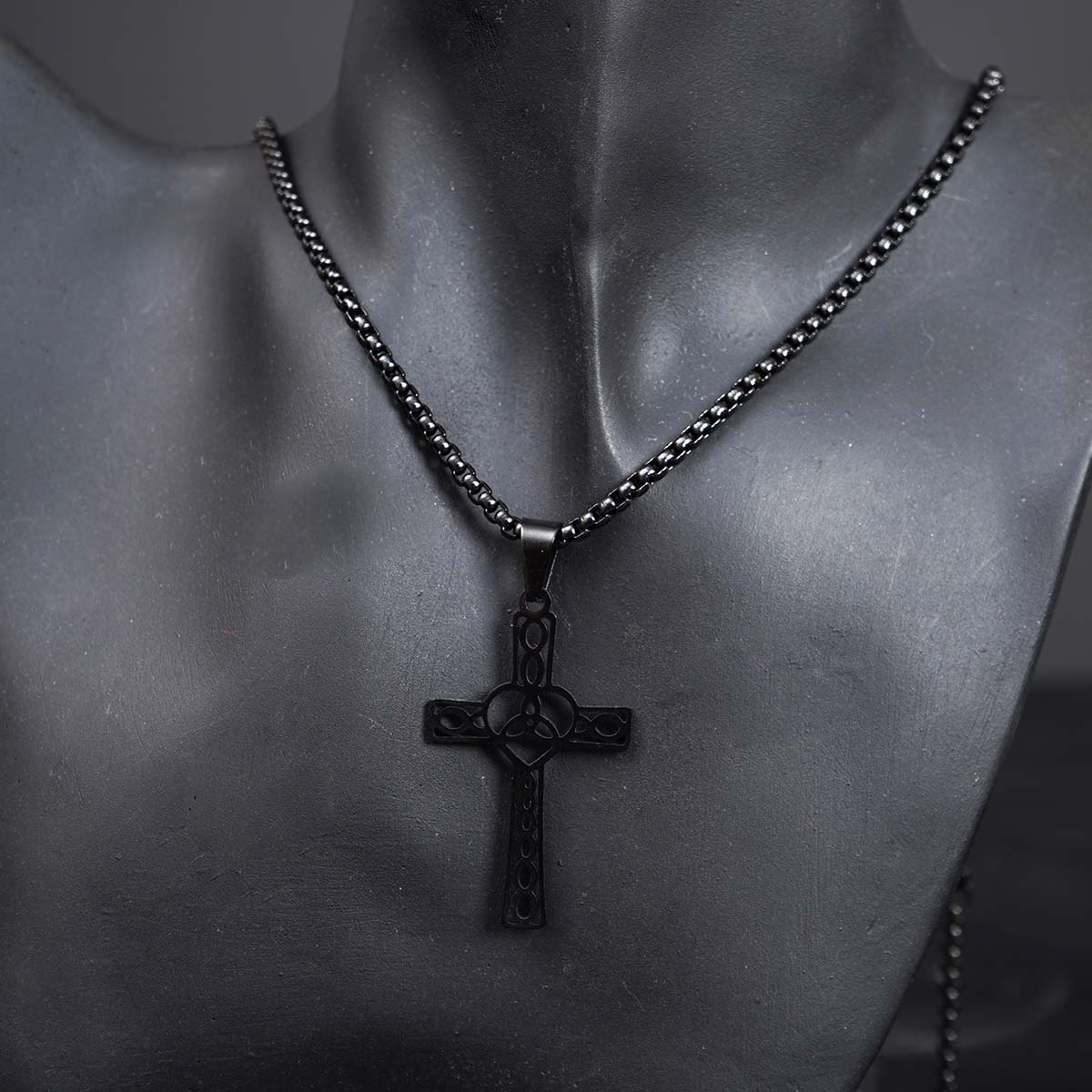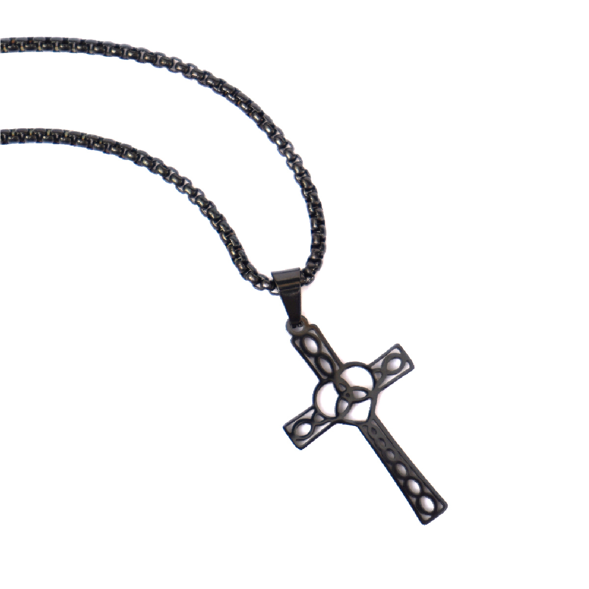 گردنبند مشکی طرح صلیب و قلب مدل SH