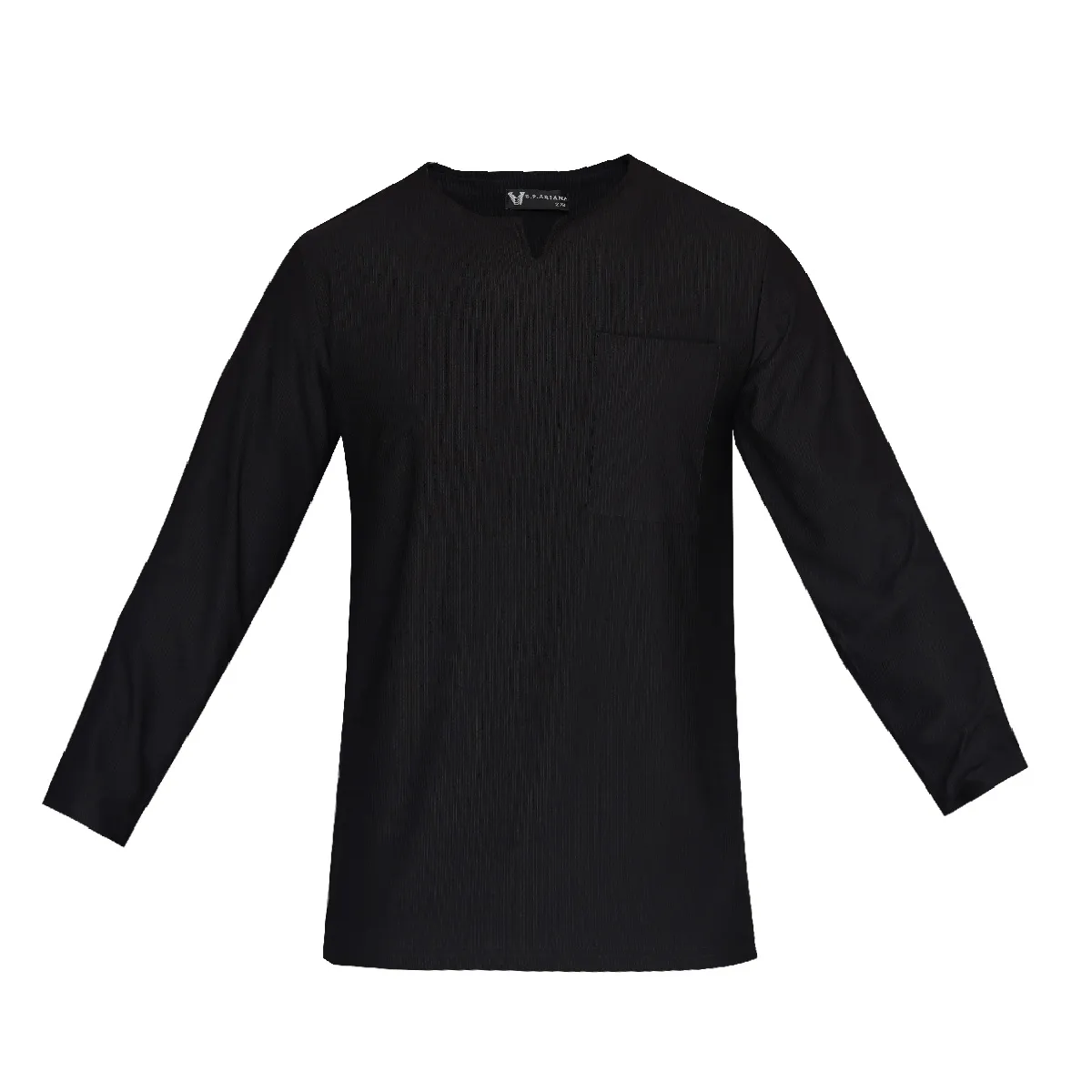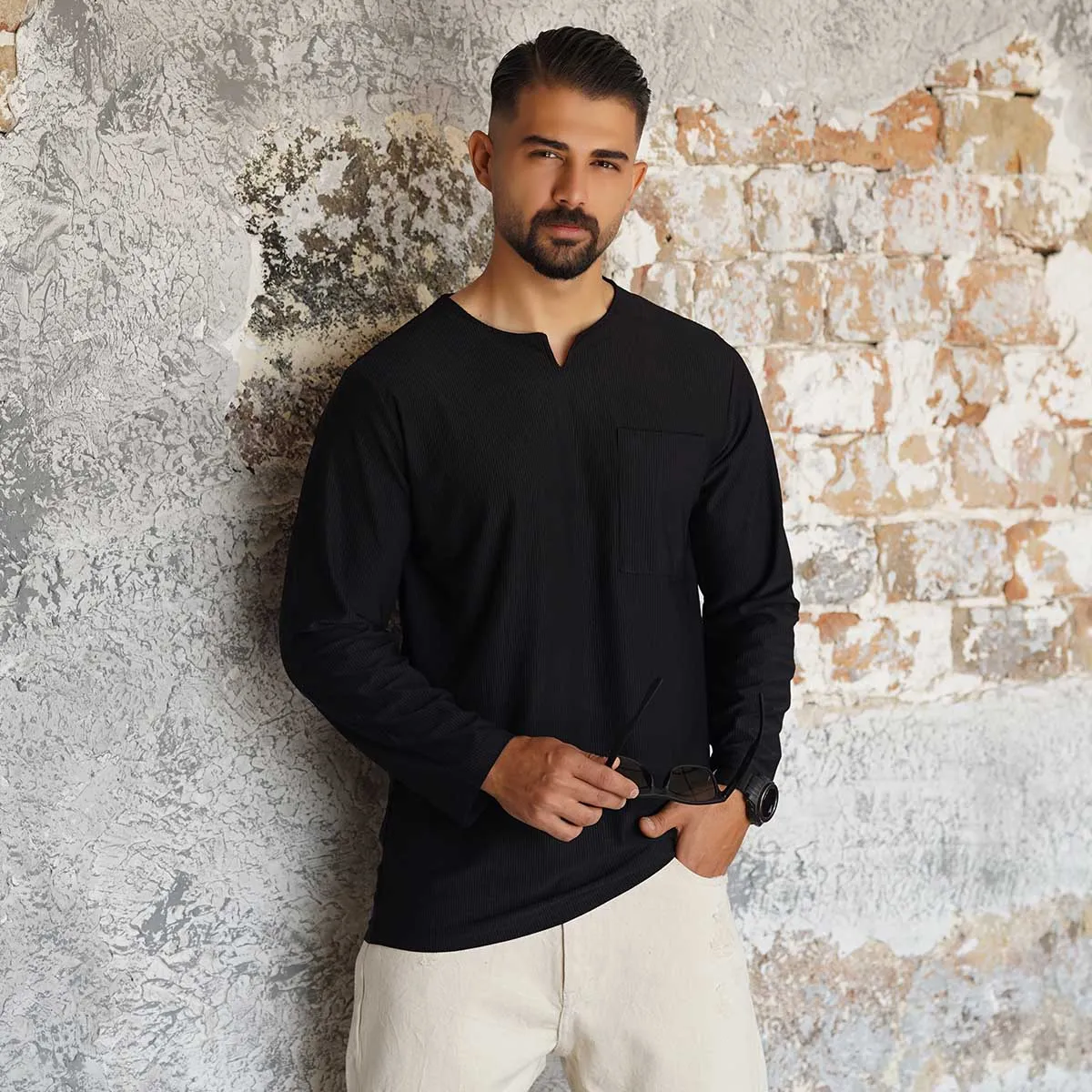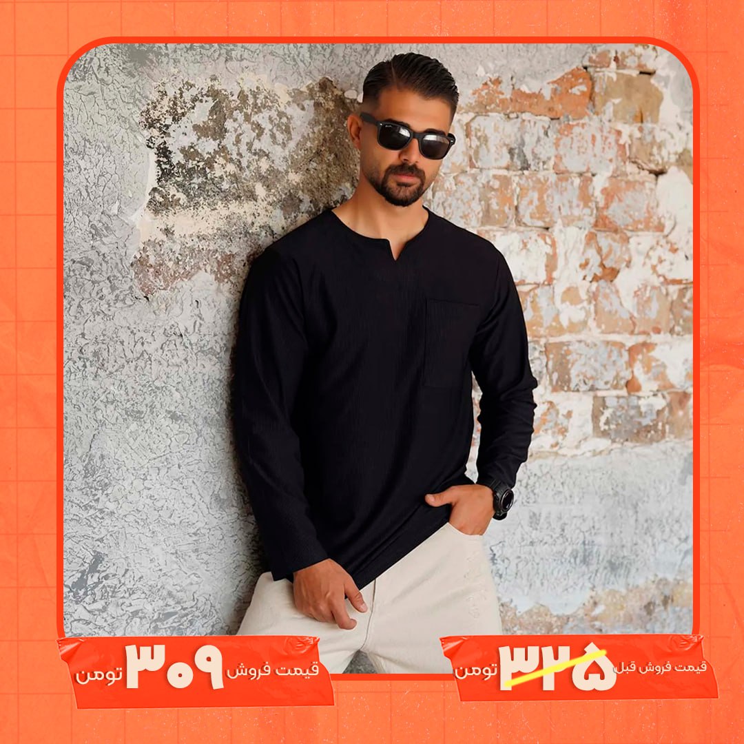 تیشرت آستین بلند یقه کوبایی مشکی مردانه مدل Asam