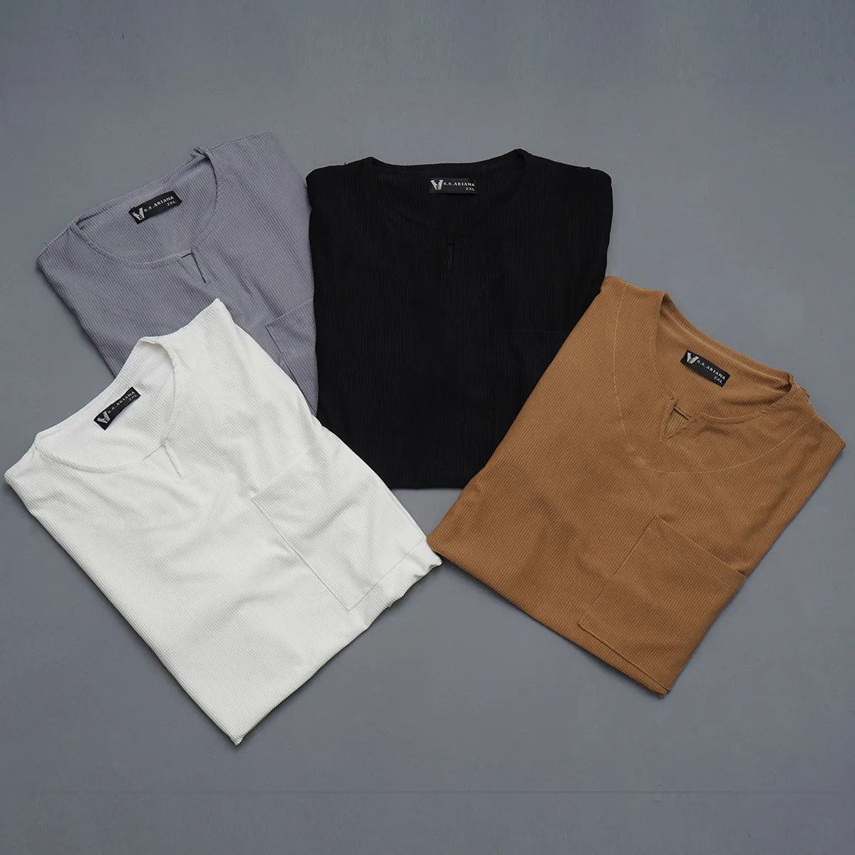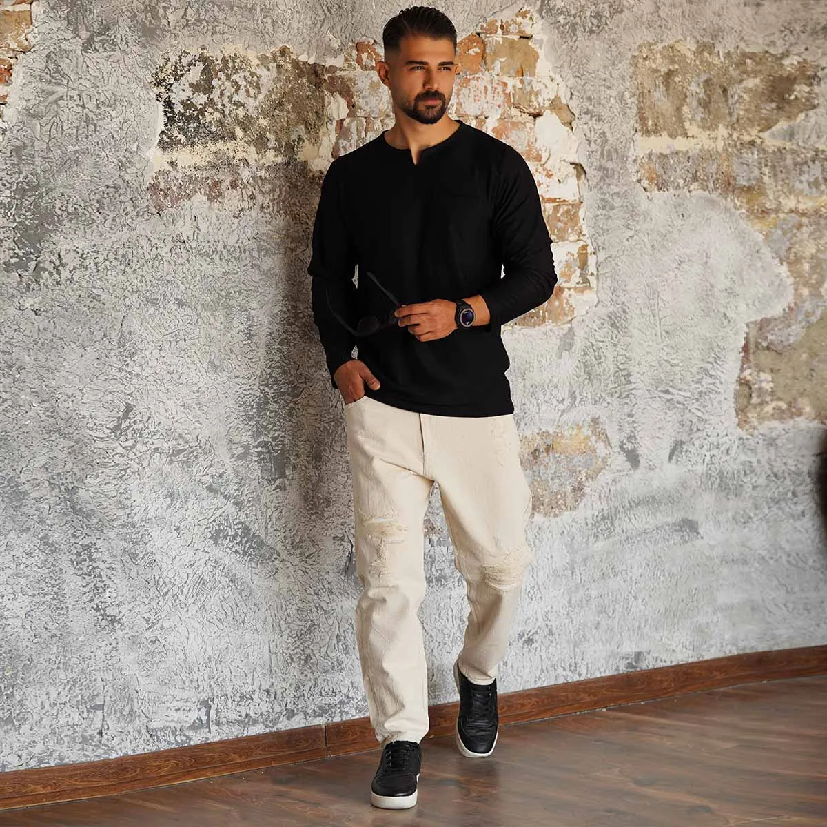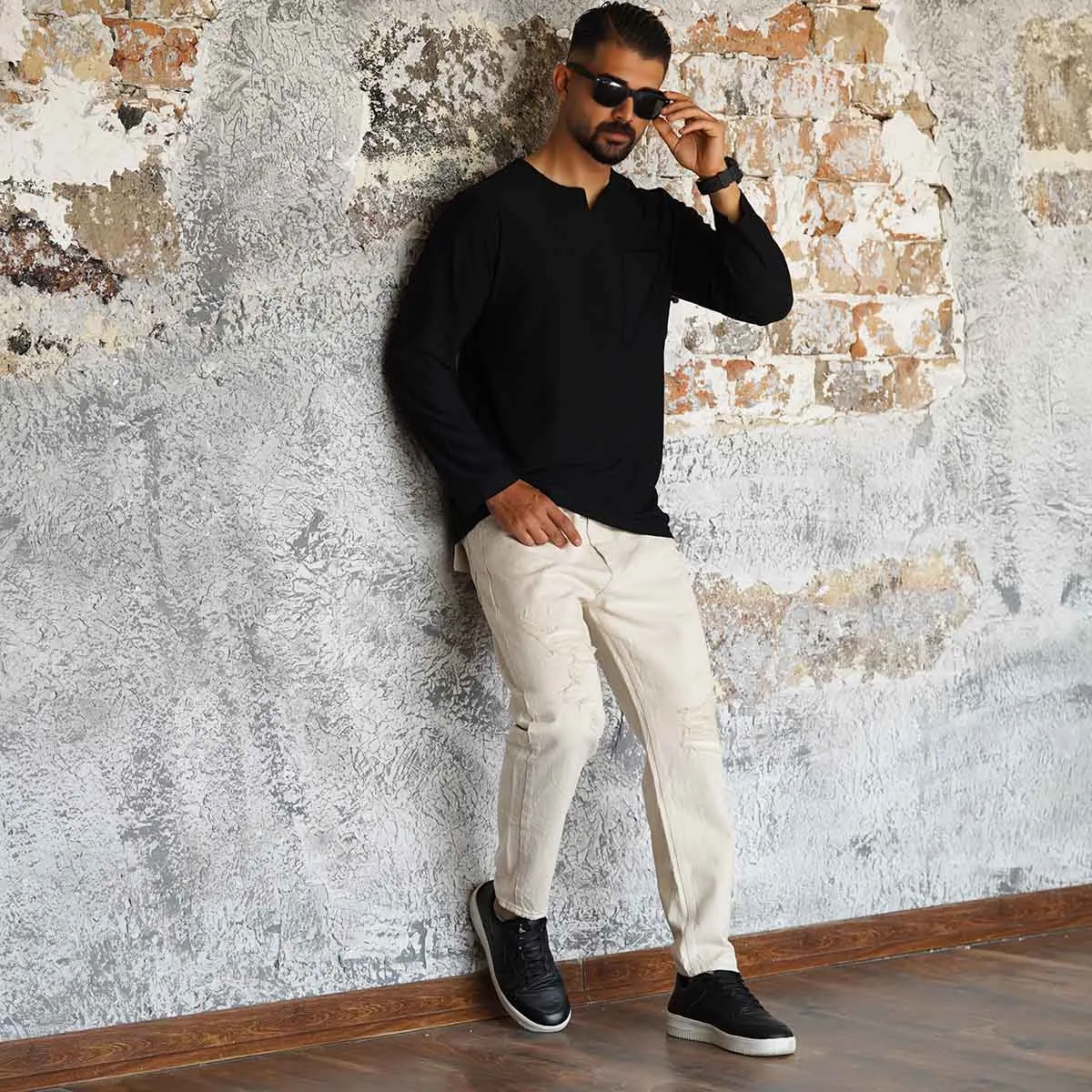 تیشرت آستین بلند یقه کوبایی مشکی مردانه مدل Asam