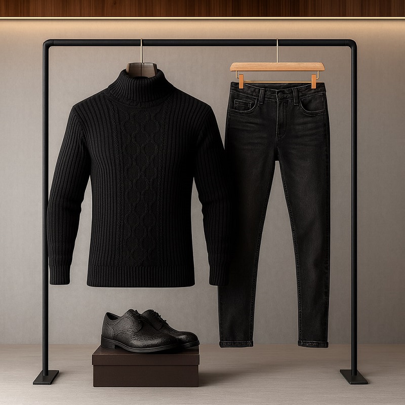 پلیوربافت مردانه مشکی یقه اسکی مدل Hakan