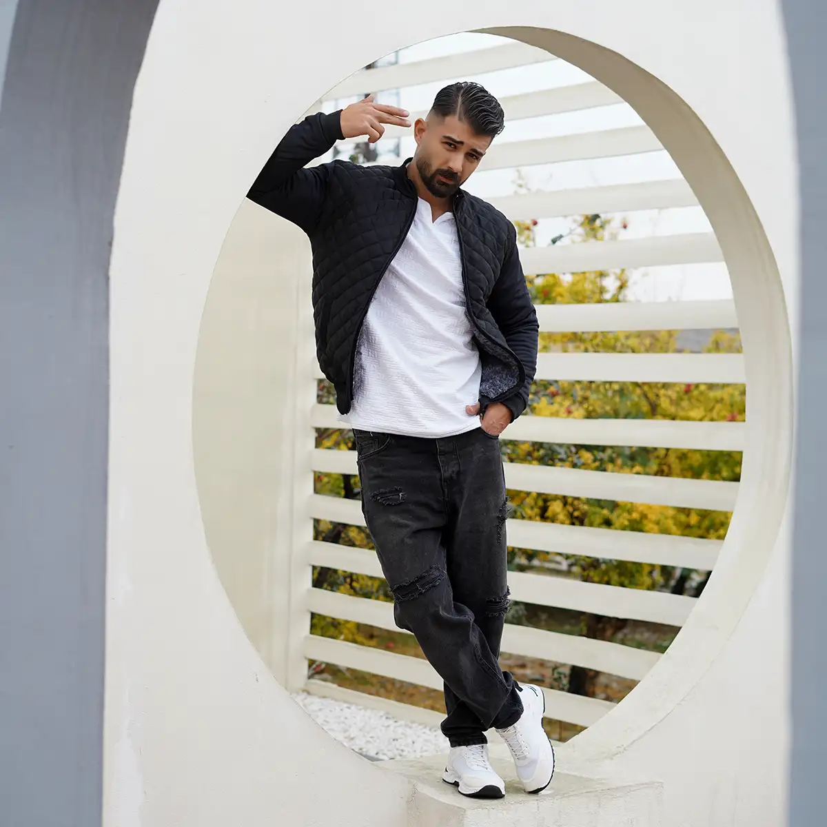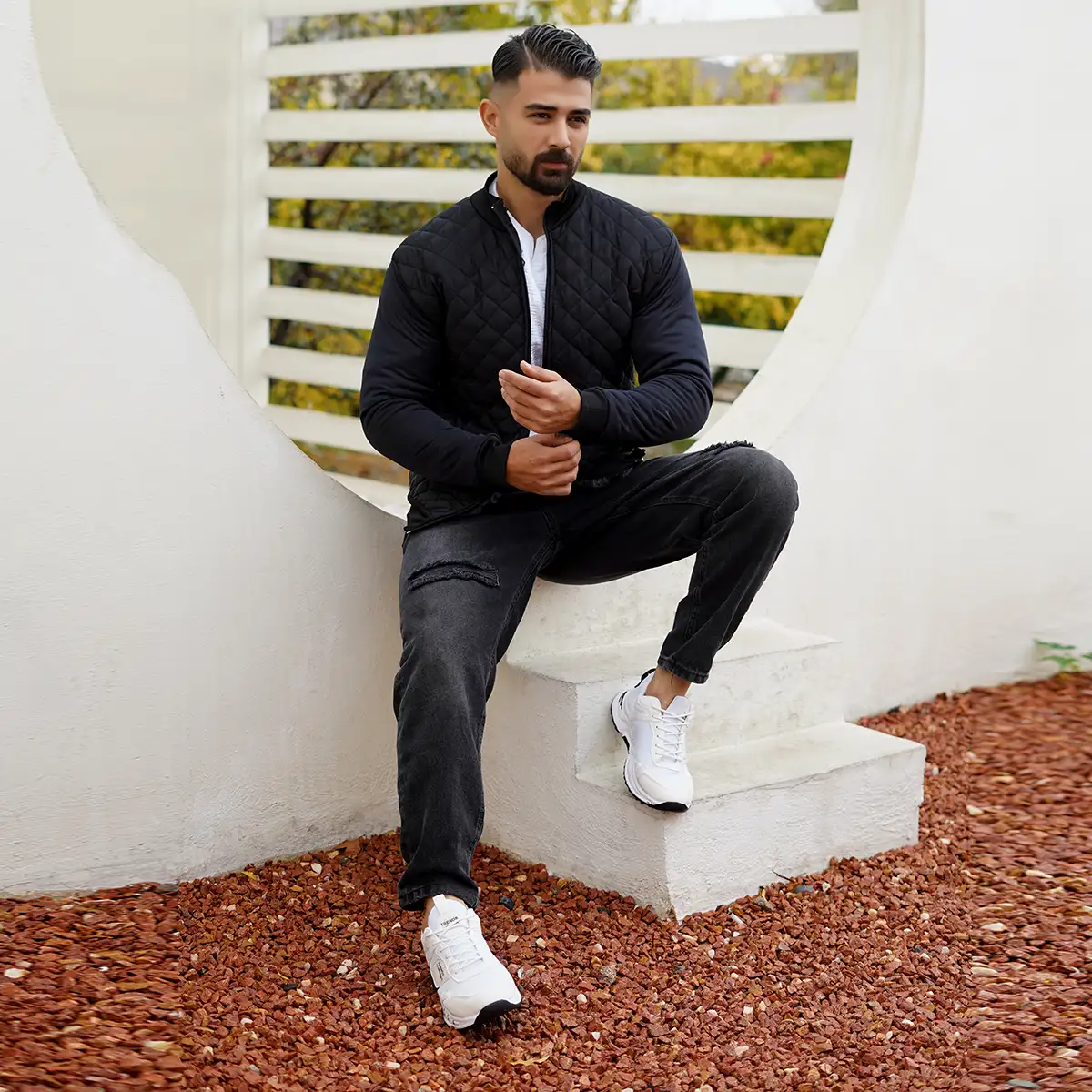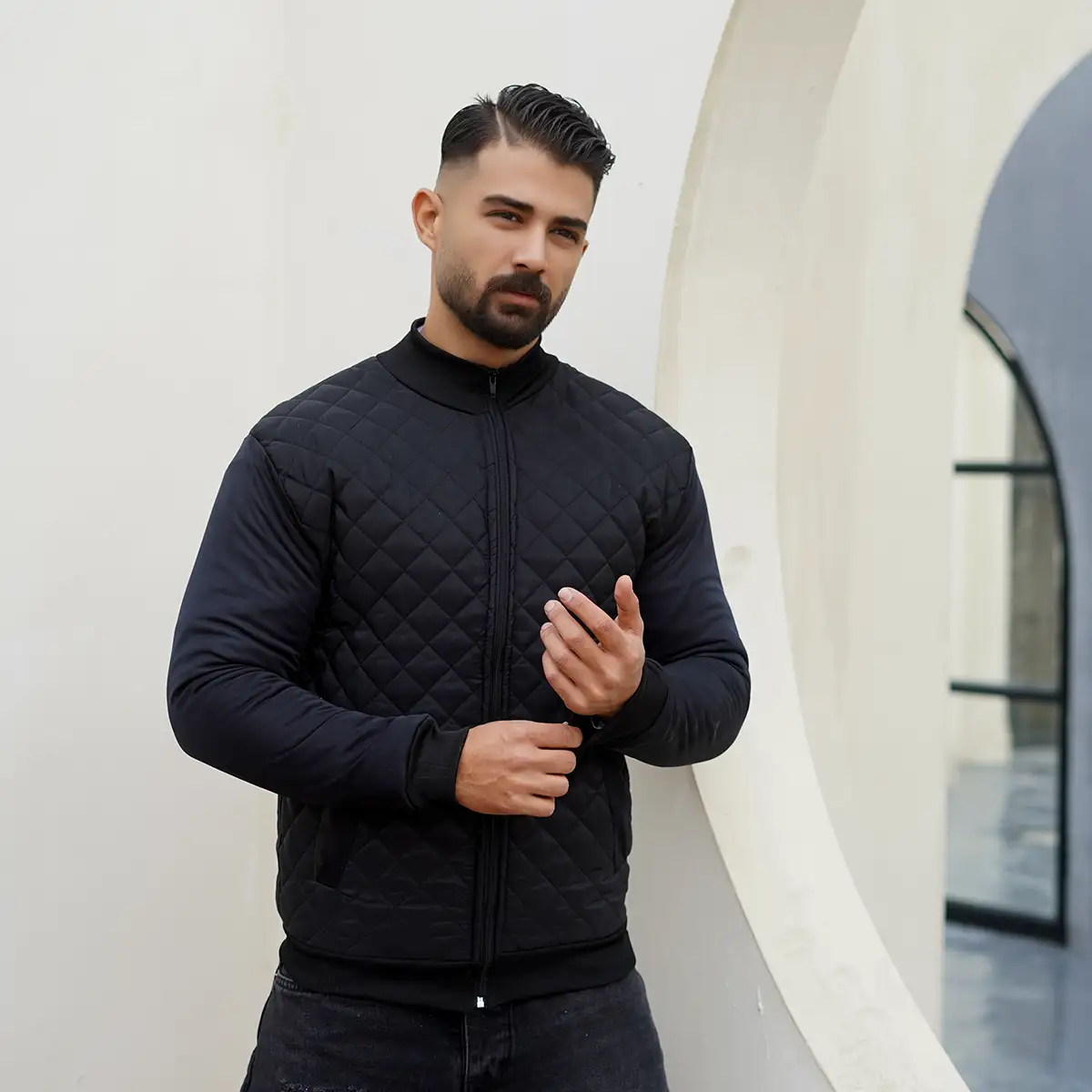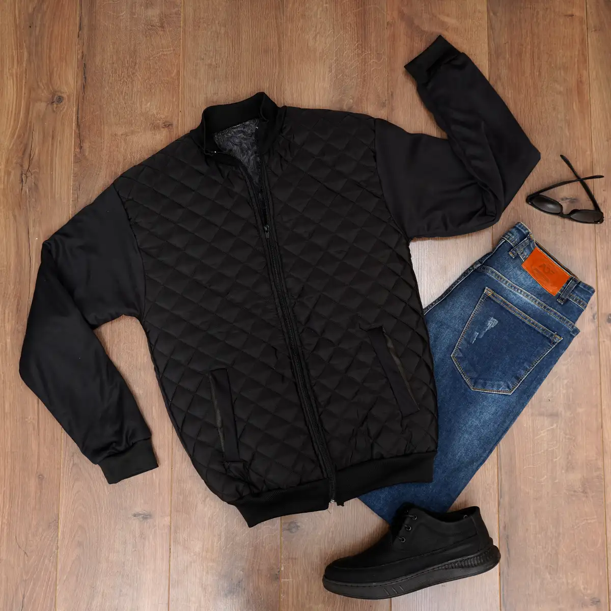 کاپشن بادی طرح لوزی مردانه مشکی مدل Karo