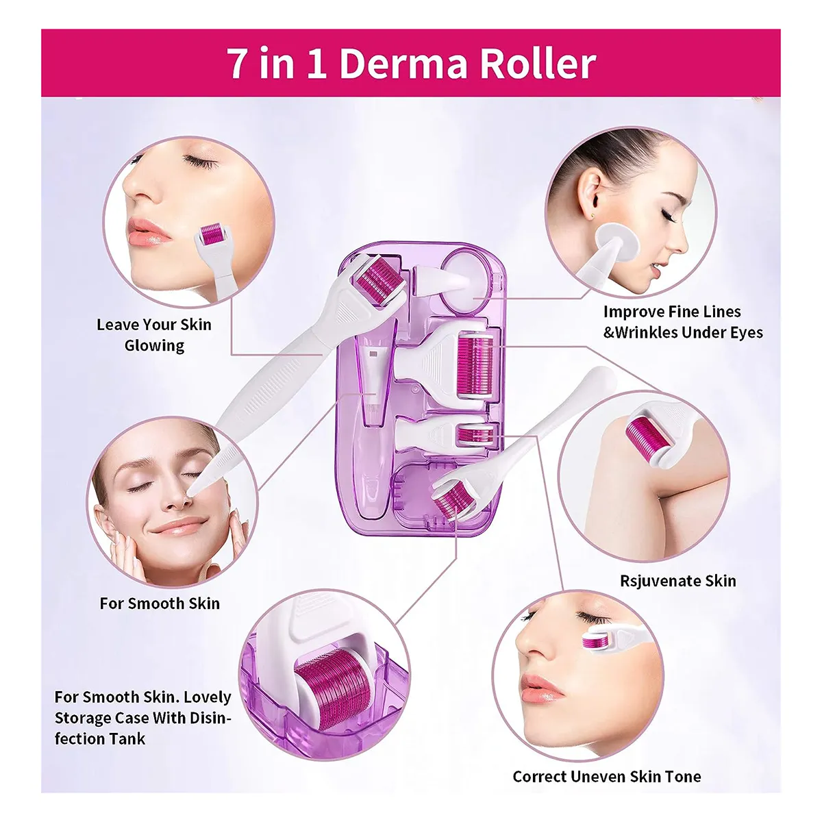 درمارولر 6 در 1 دی آر اس مخصوص جوانسازی پوست و دارای طیف وسیعی از سوزن ها در سایز های مختلف هستند و برای انواع پوست و در تمام نقاط بدن قابل استفاده می باشند. این پک درمارولر دارای 4 سری رولر 1200 ، 720 ، 300 و 12 سوزنه است. در بین انواع سری