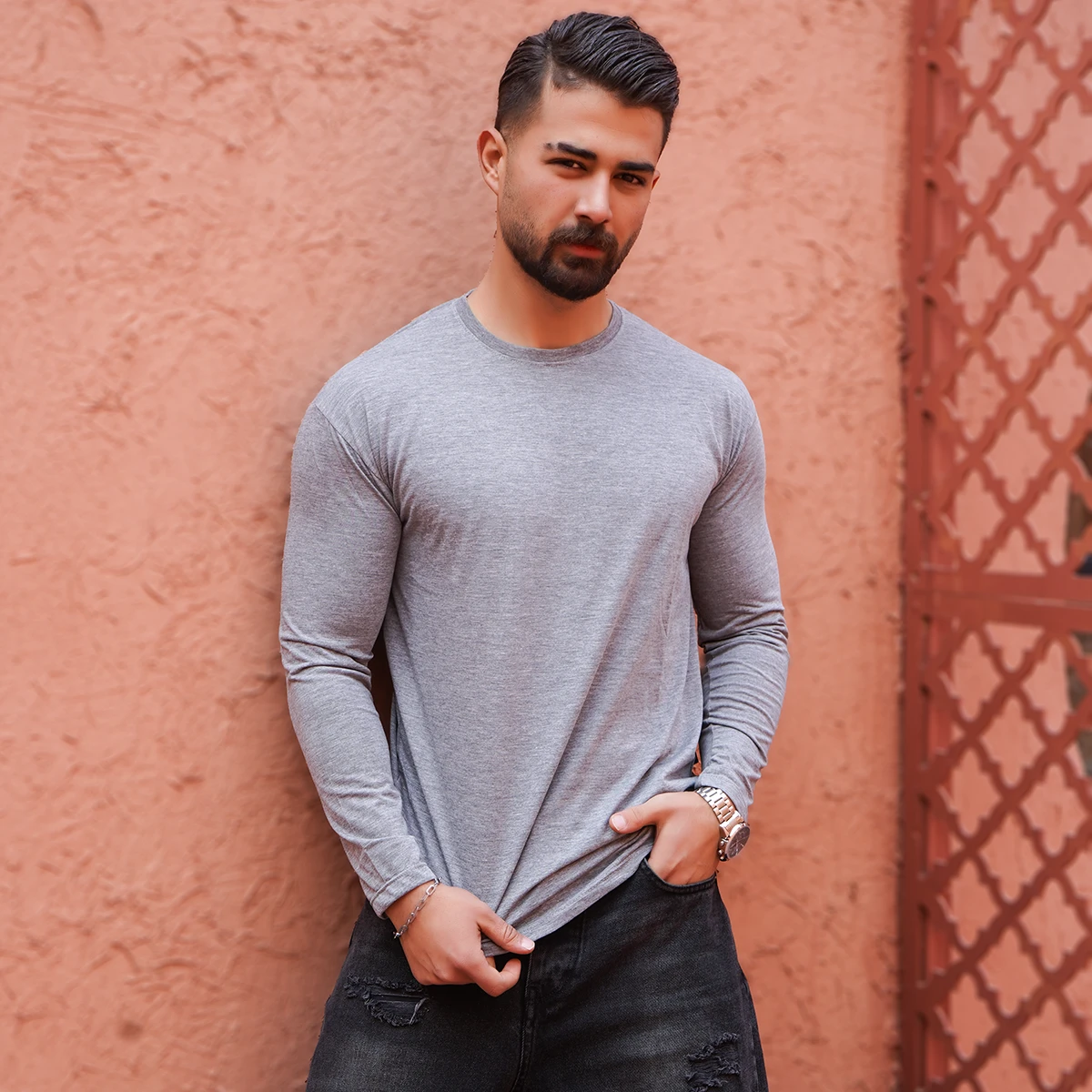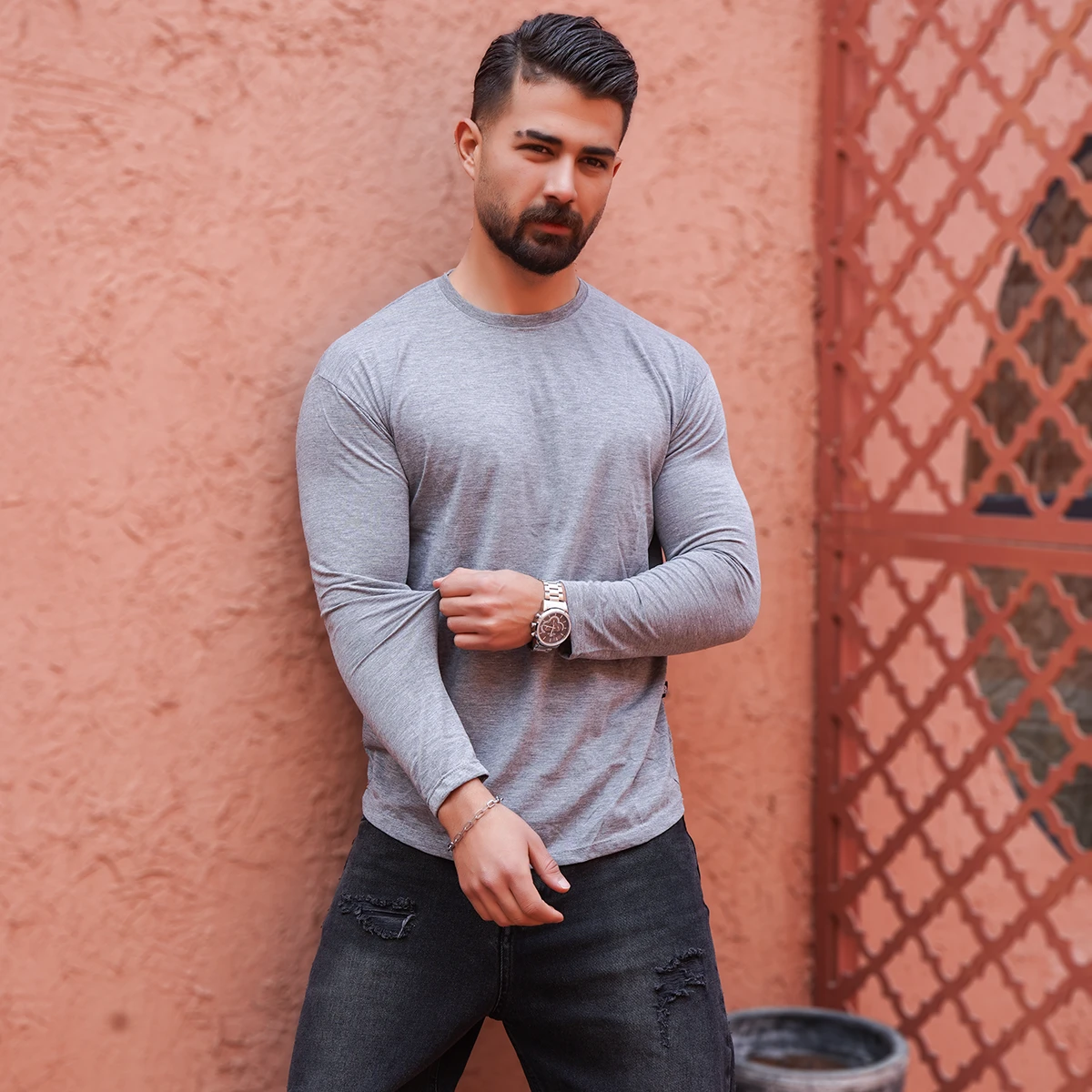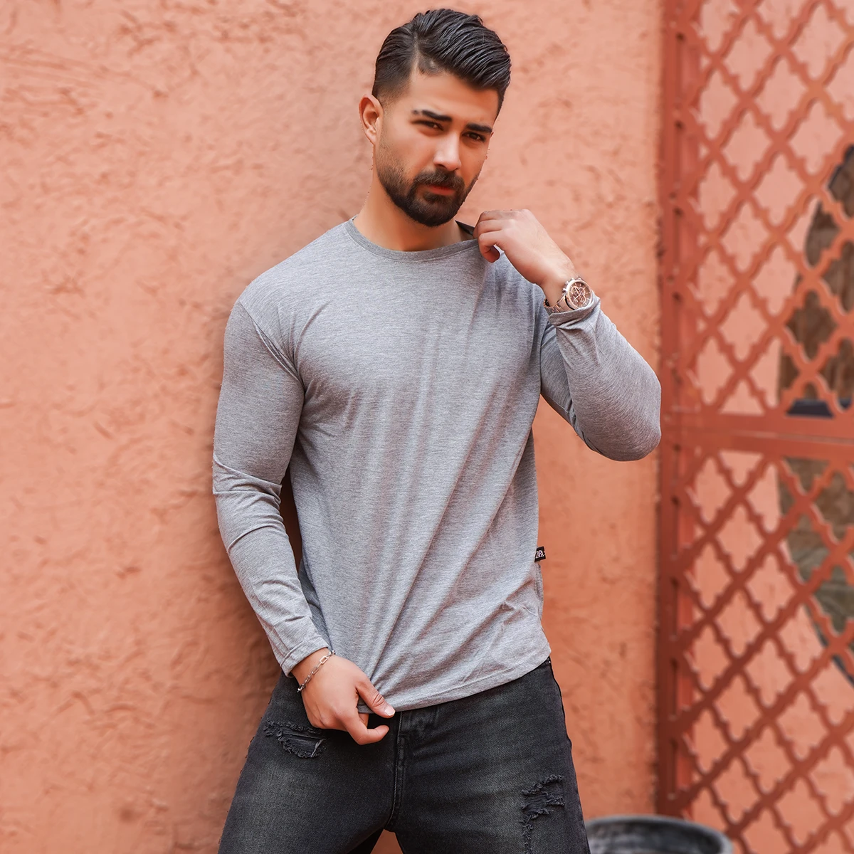 تیشرت آستین بلند طوسی مردانه مدل Vala