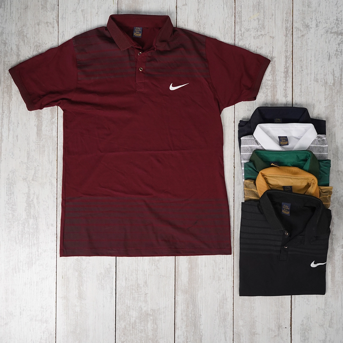 تیشرت یقه دار راه راه سفید مدل Farhan