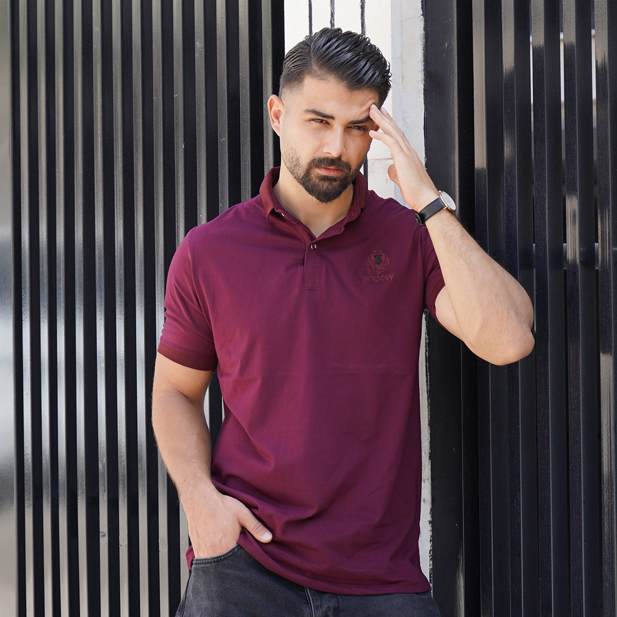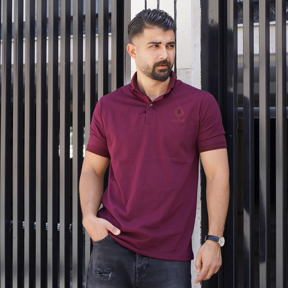 تیشرت یقه دار زرشکی مردانه مدل Taha