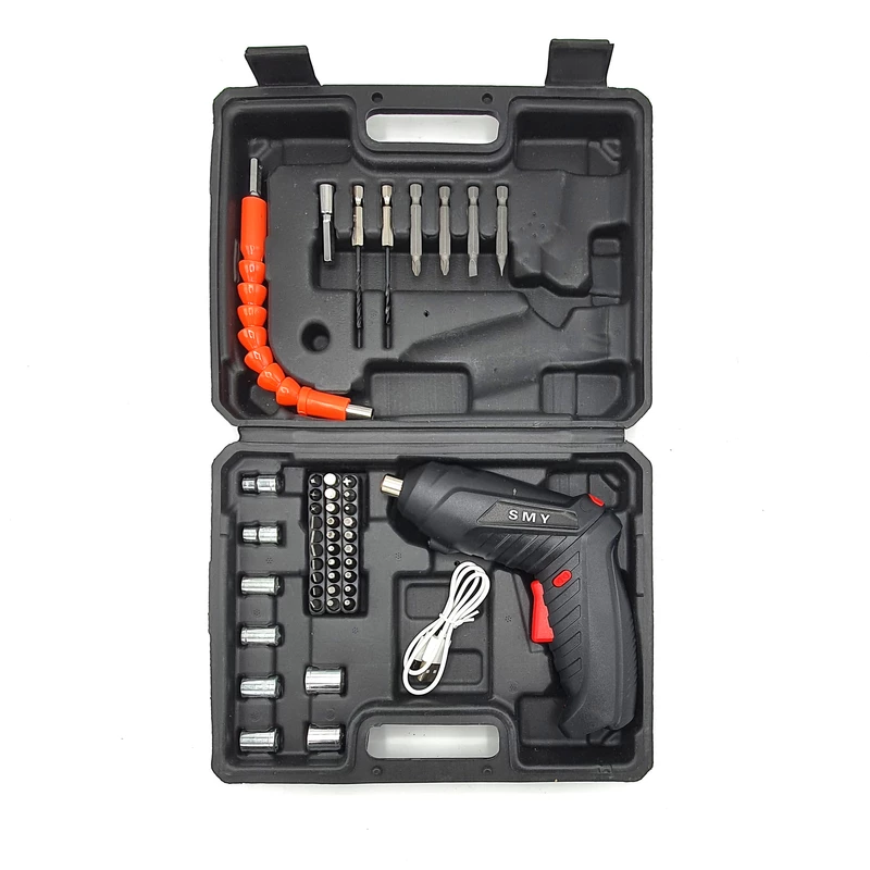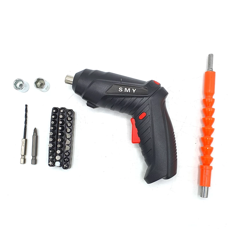 این دریل پیچ گوشتی شارژی تفنگی ۴.۲ ولت، مجهز به باتری قوی جهت اثربخشی بیشتر و عمر طولانیتر است. این دستگاه قابلیت چرخش بدنه دارد به طوریکه به صورت مستقیم هم قابل استفاده است. این ابزار دارای ۳۴ عدد نوک پیچگوشتی کاربردی، یک عدد رابط منعطف، دو عدد مته چوب، یک عدد رابط نوک خور و ۸ عدد بکس ۱/۴اینچ است که از مواد اولیه مناسب ساخته شدهاند. این پیچ گوشتی برای استفاده در صنایع الکترونیک، کامپیوتر، مکانیک و مصارف عمومی مناسب است. پیچ گوشتی شارژی اس ام وای مدل ۴.۲v مجهز به سیستم ابزارگیر منحصر به فرد با گیرایی بسیار قوی حین کار است، شامل یک چراغ LED مجزا است تا بتوان از آن در محیطهای کمنور و تاریک استفاده کرد و در آخر مجهز به نگهدارنده سریع پیچگوشتی یا مگنت جهت کاربری سریع و آسان است. این دستگاه دارای کابل شارژر نیز است؛ برای شارژ این دستگاه میتوانید از تمامی شارژرهای USBدار مانند موبایل، کامپیوتر و ... استفاده کنید.