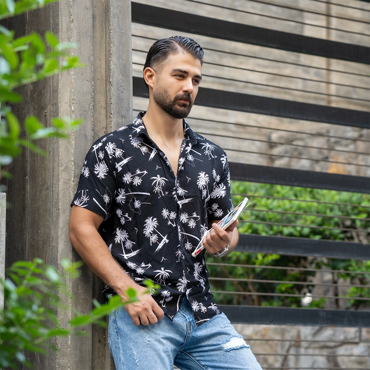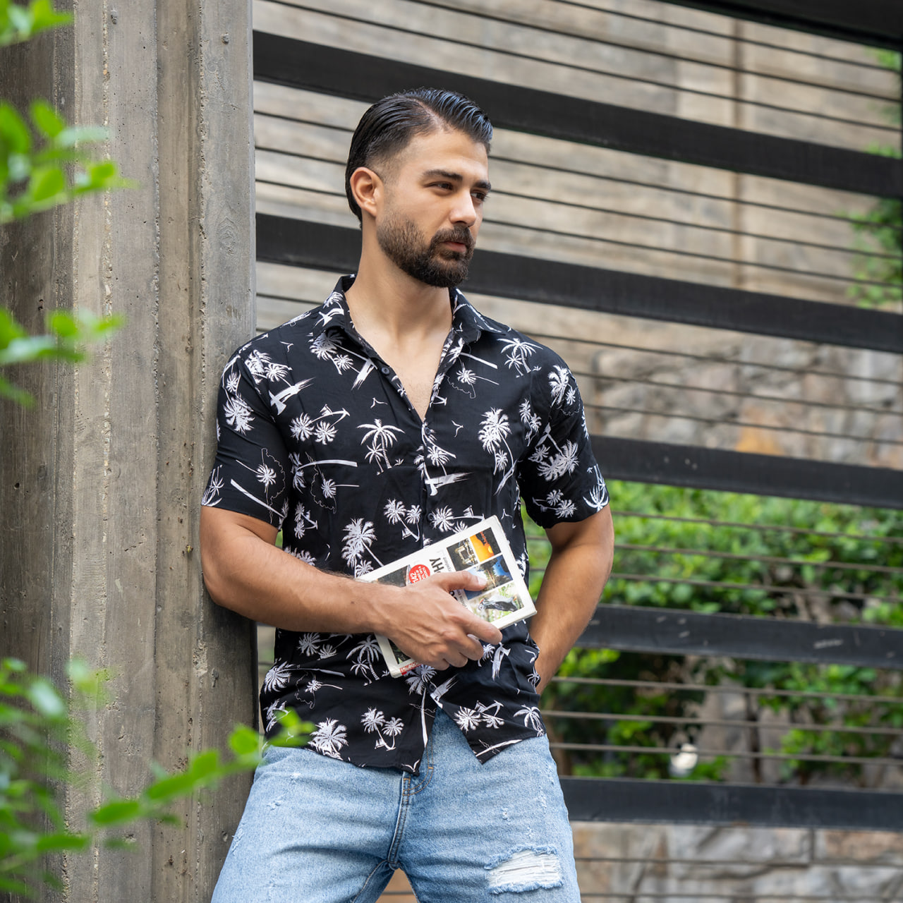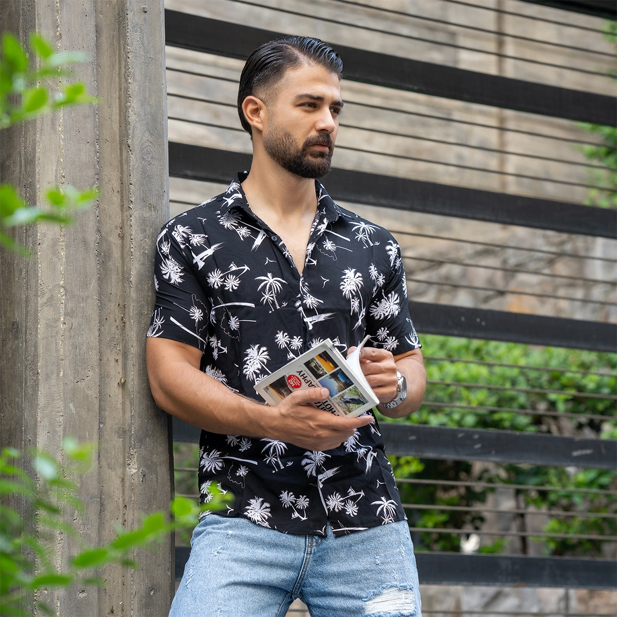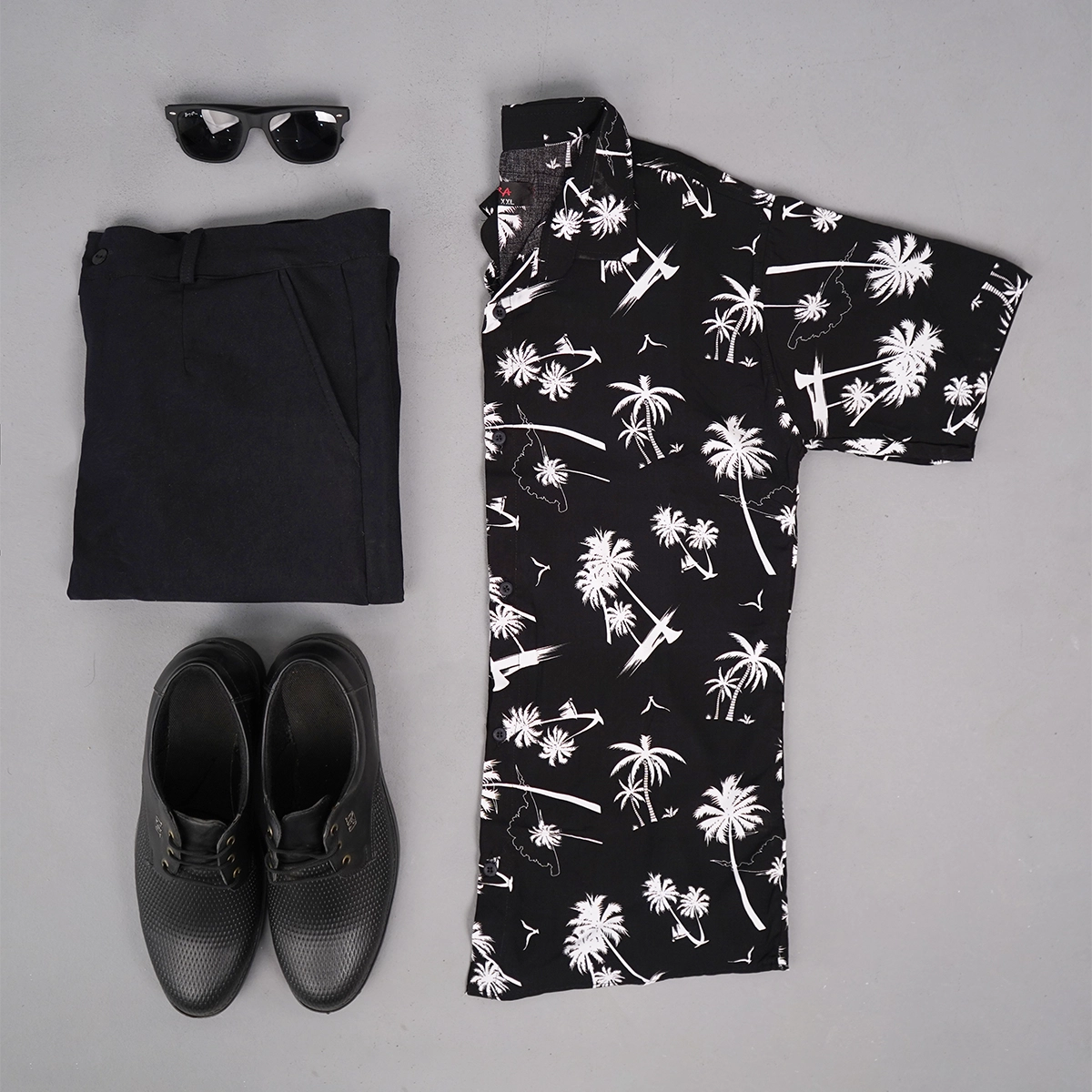 پیراهن هاوایی مشکی مردانه مدل Boros