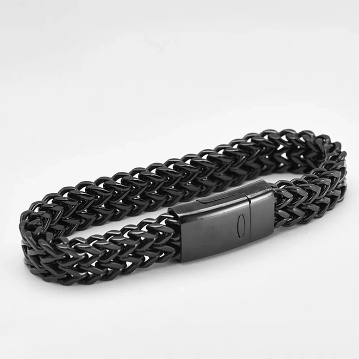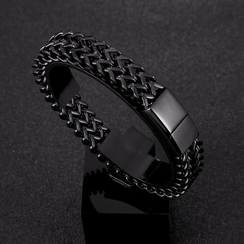 دستبند زنجیری ضخیم مشکی مردانه مدل H23 جنس : استیل طول: حدود 24 سانتیمتر قطر: حدود 10 میلیمتر