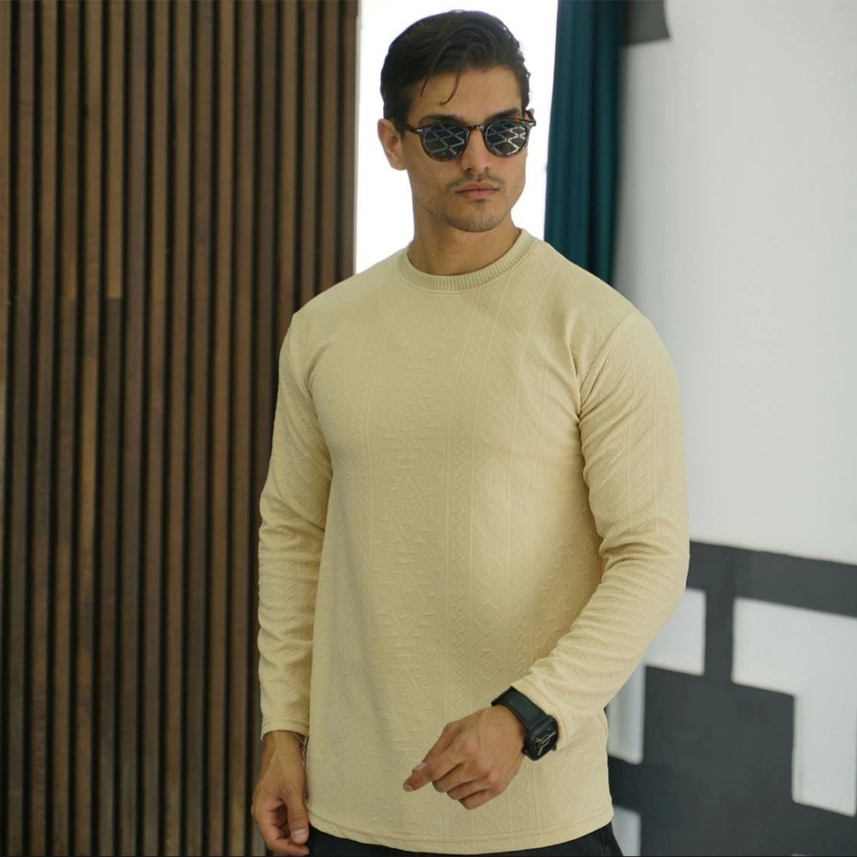 بلوز طرح دار مردانه مراکشی کرم مدل Nikan