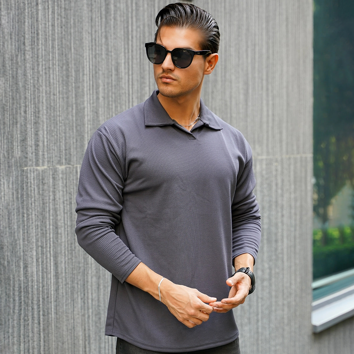بلوز کبریتی یقه دار مردانه طوسی مدل Tami