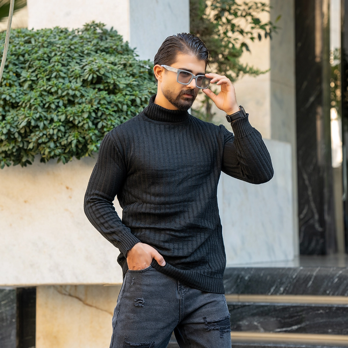 پلیور مردانه مشکی طرح خطی مدل Arban