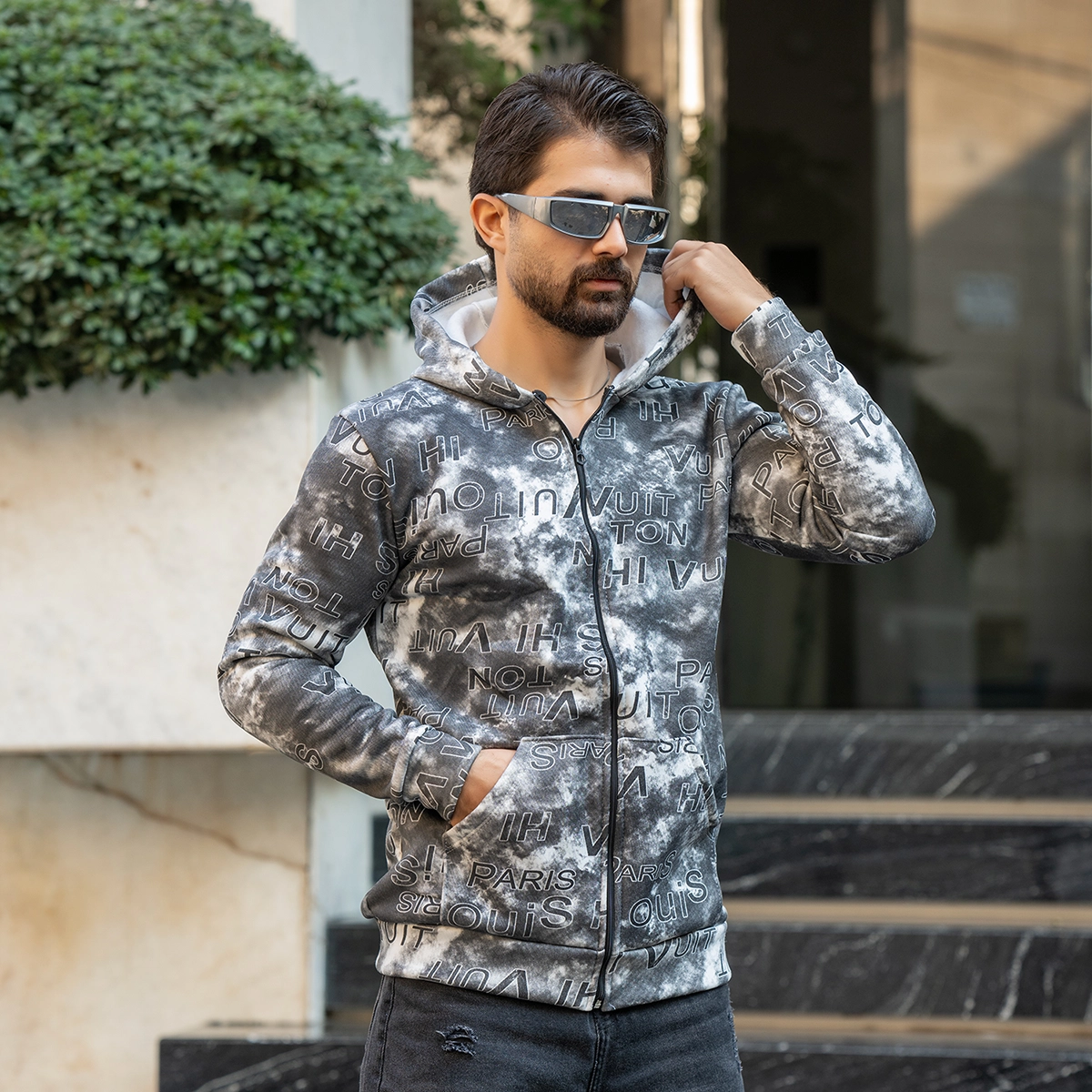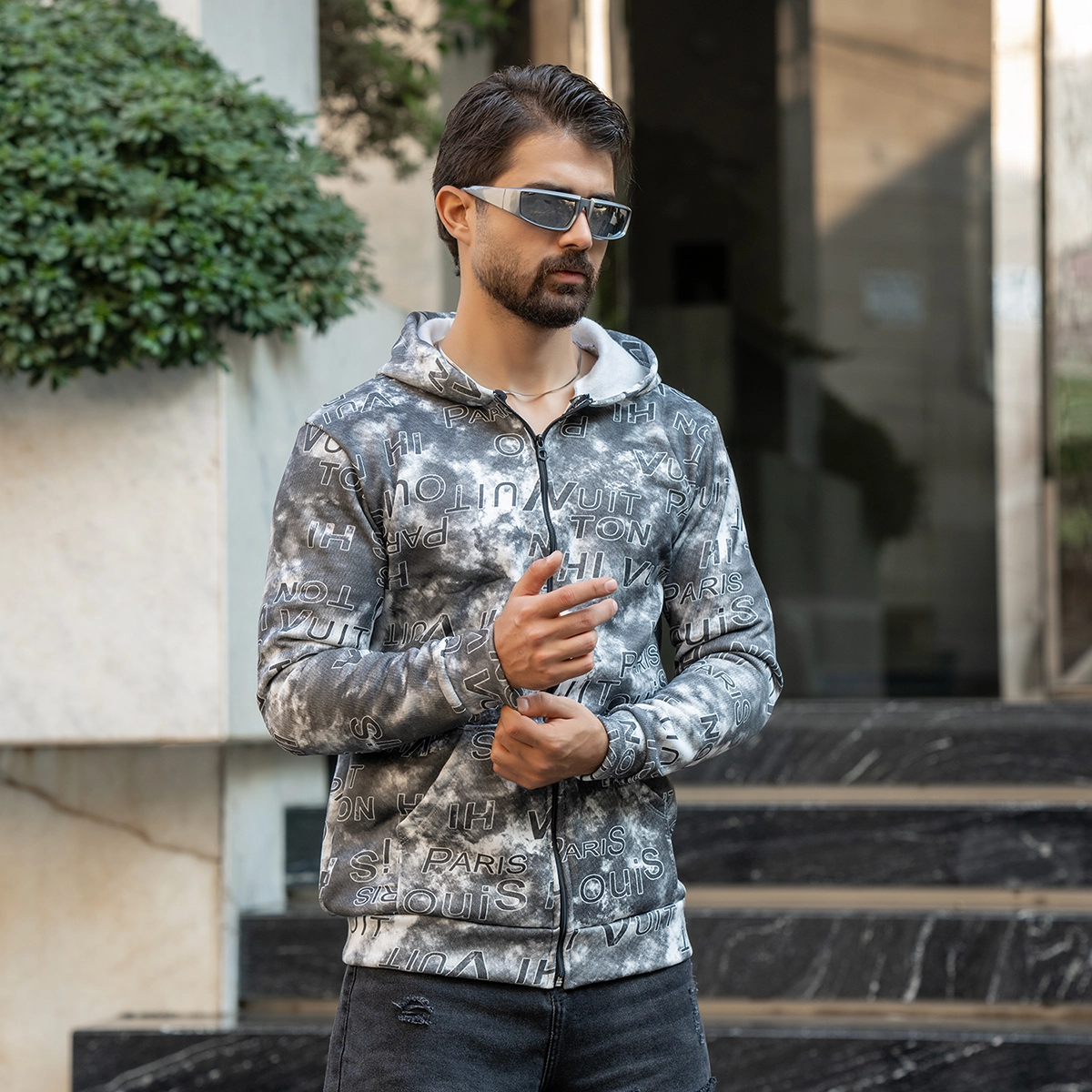 سوییشرت طرحدار مردانه طوسی مدل Roham