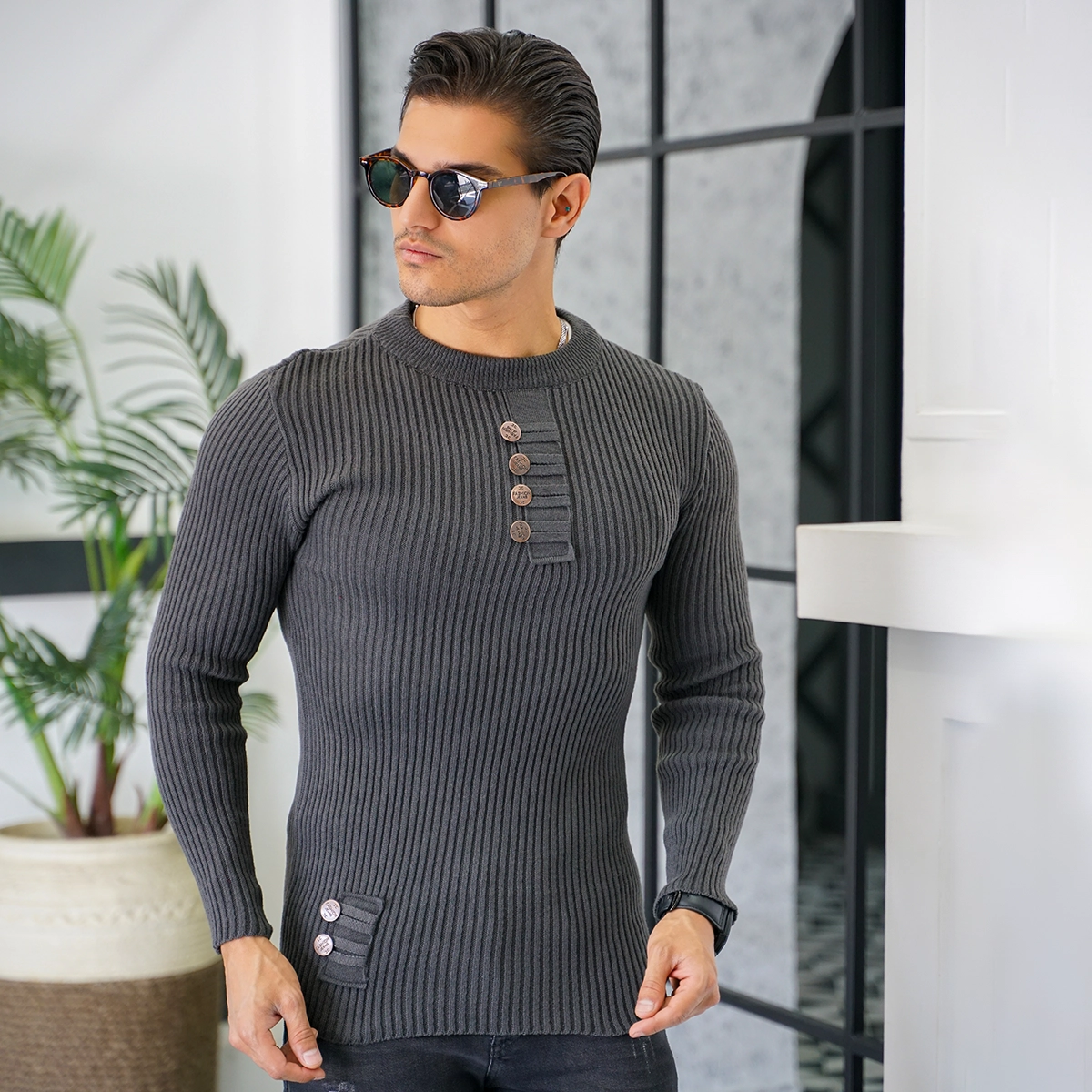 بافت مردانه طوسی مدل دکمه ای