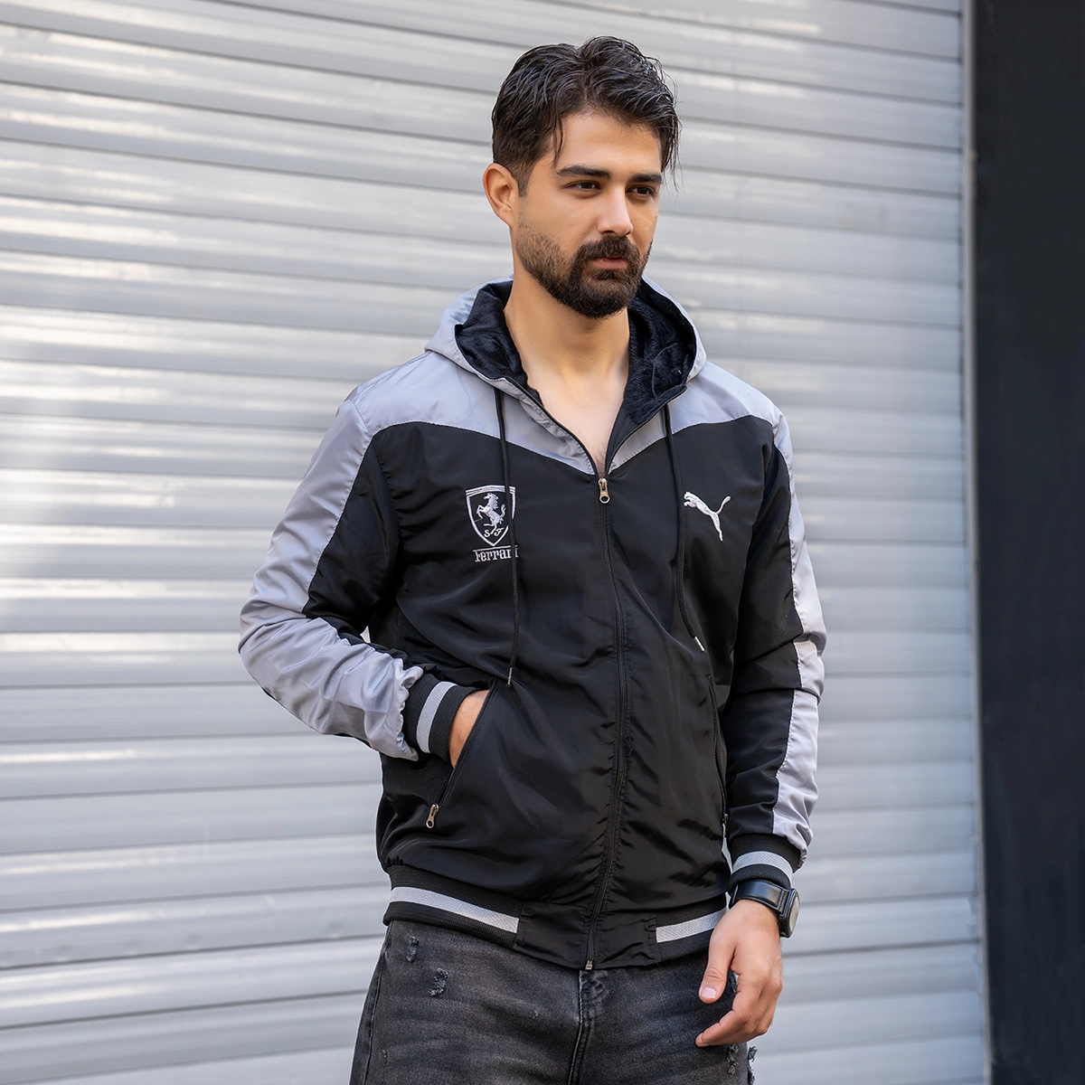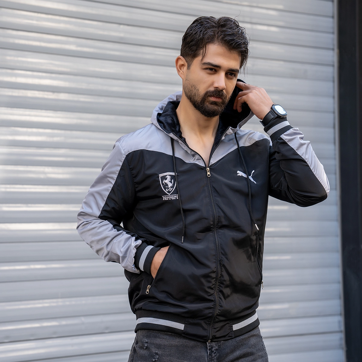 کاپشن مشکی طوسی مردانه مدل Ferrari