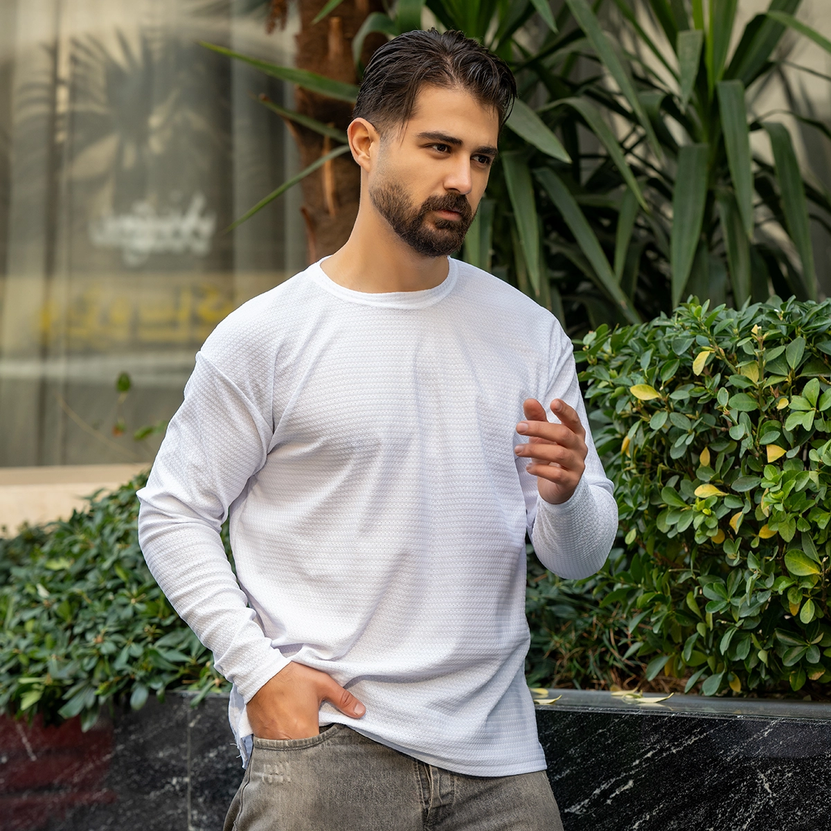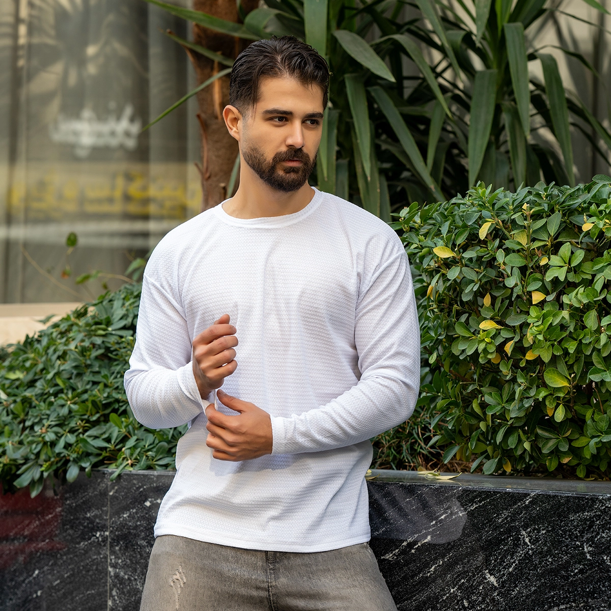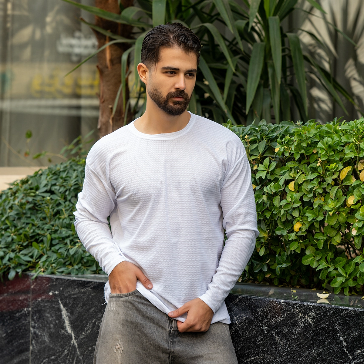 تیشرت آستین بلند مردانه سفید مدل ARSALAN
