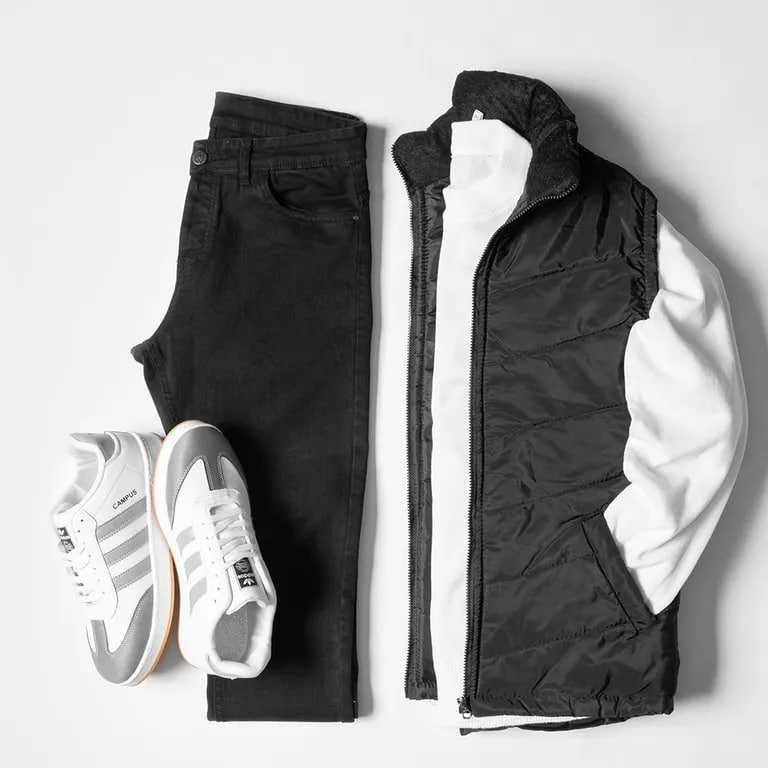 پکیج دورس سفید Atra و پافر مردانه Saniyar