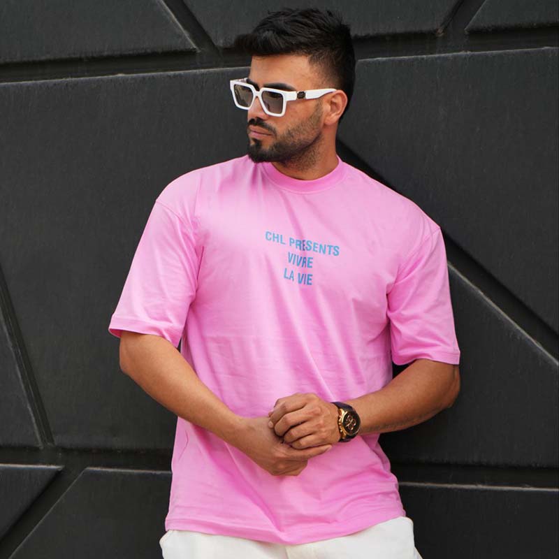 تیشرت مردانه صورتی مدل VIVRE LAVIE
