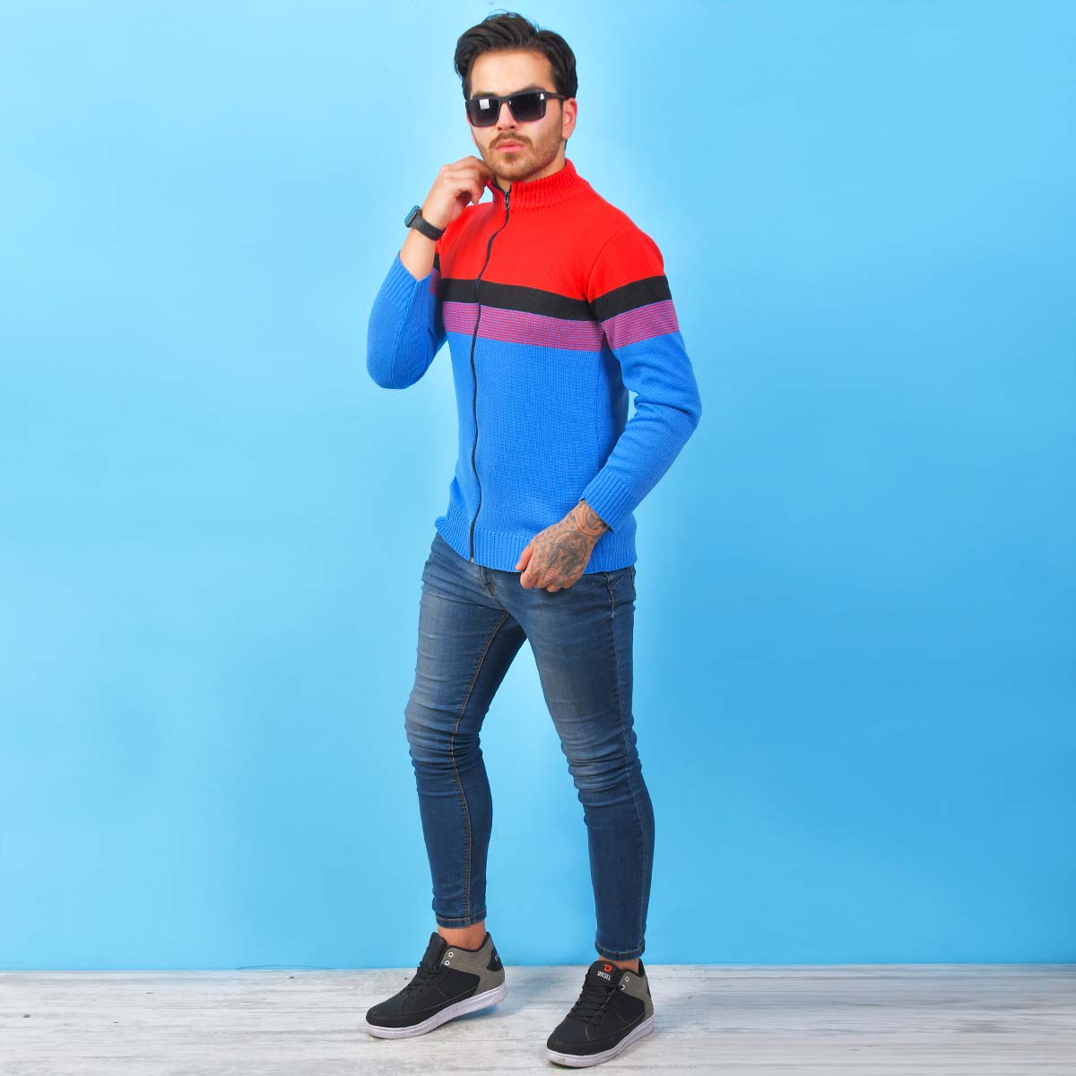 سوئیشرت بافت مردانه مدل Brenda رنگ قرمز آبی