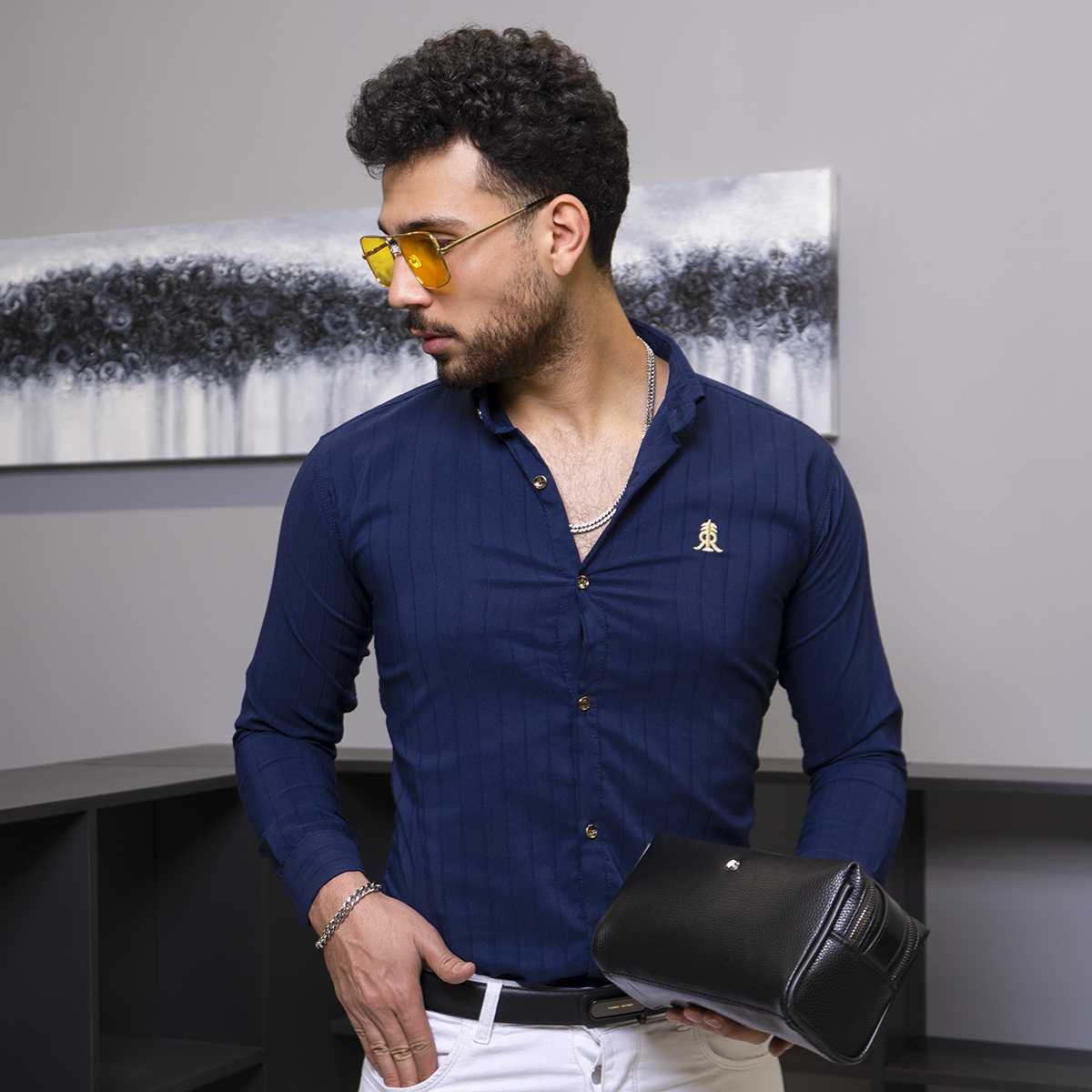 پيراهن مردانه رنگ سرمه اي مدل Rafel