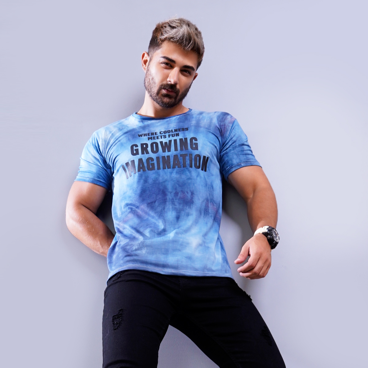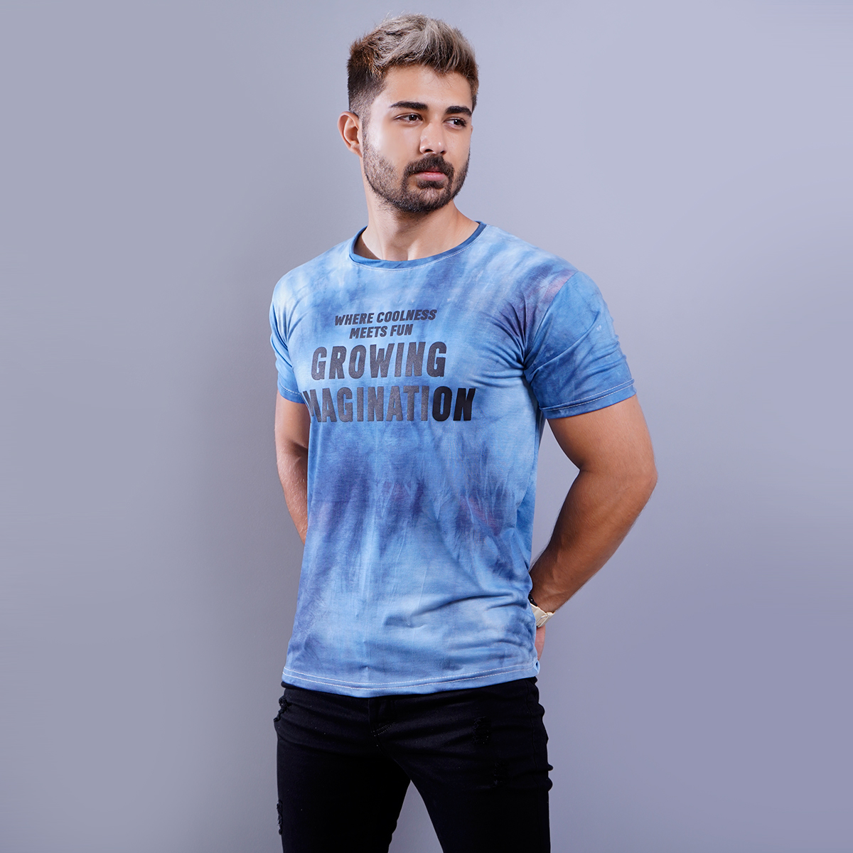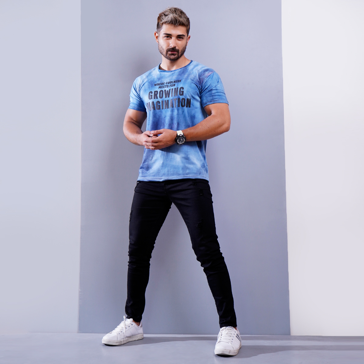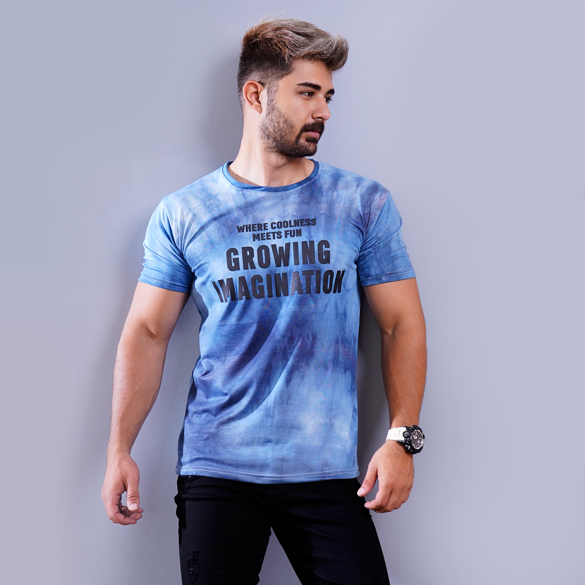 تیشرت مردانه ابر و بادی آبی مدل windy